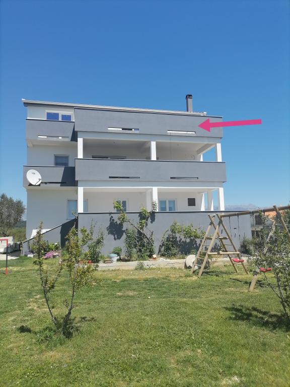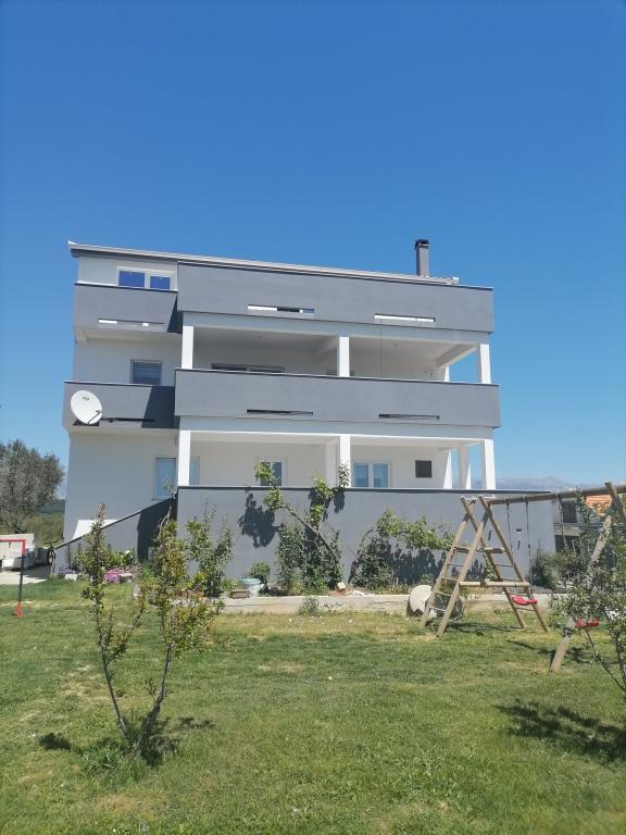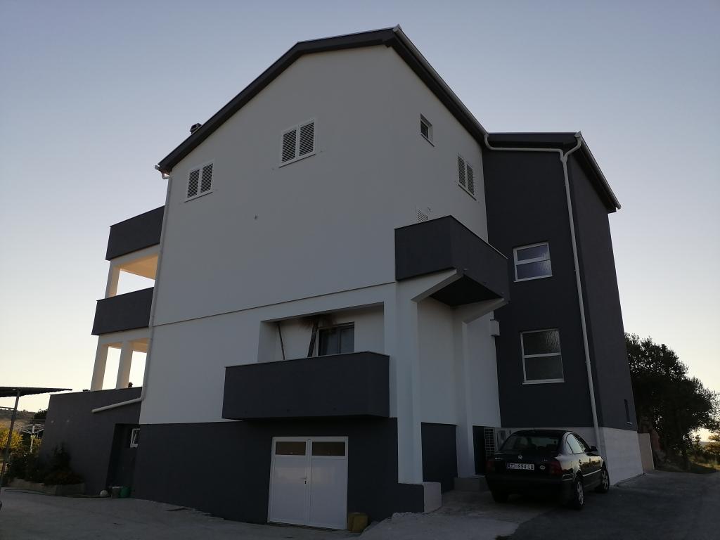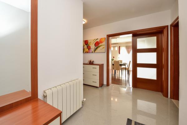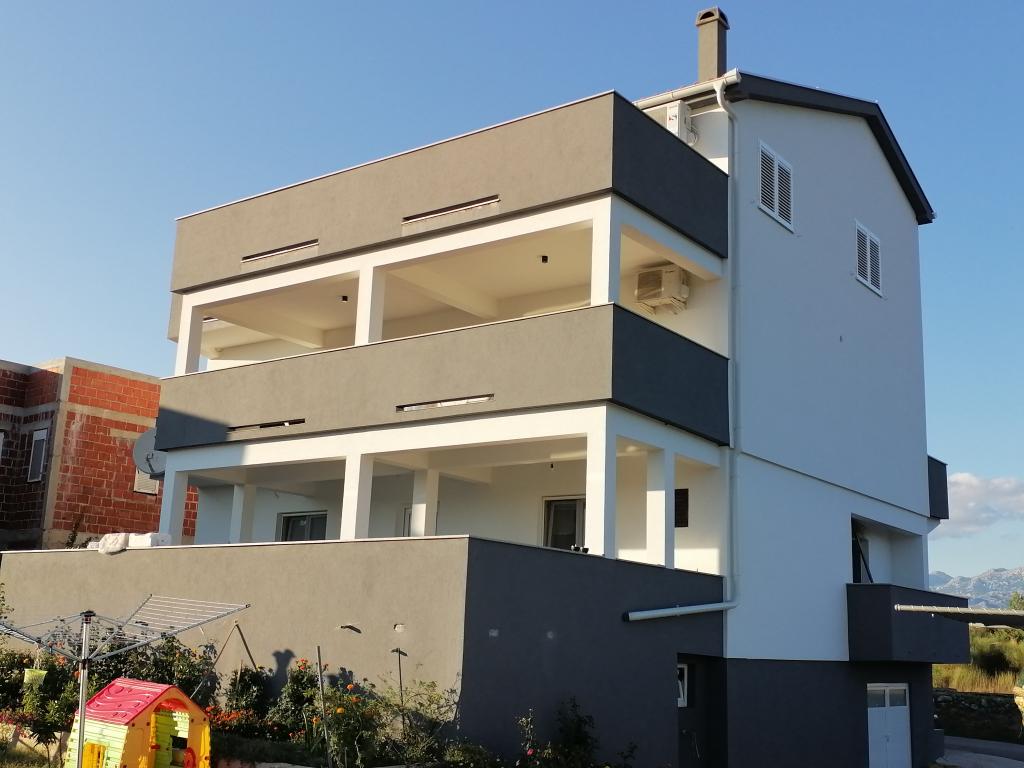 Apartamentele sunt situate într-o casă de familie. Ambele au 100 de metri pătrați și o terasă de 30 de metri pătrați. Apartamentul 1 este situat la etajul 1 al casei. Are două camere și două paturi suplimentare. Are două băi. Apartamentul 2 este situat la etajul al doilea al casei. Are 3 camere și un pat suplimentar. Are 2 băi. Curtea este spațioasă și potrivită pentru joacă (leagăne, tobogan, porți). Este asigurat un loc de parcare umbrit. Plaja este nisipoasă, marea este puțin adâncă și caldă, ideală pentru familiile cu copii mici.