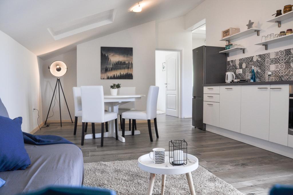 Apartments Carnizza oferă o curte mare cu parcare gratuită și acoperită și un loc de joacă pentru copii pentru fotbal, volei și leagăne. De asemenea, oferă spațiu pentru a te plimba prin casă. Casa este situata intr-un mediu linistit, iar privelistea este indreptata catre mare si Velebit.