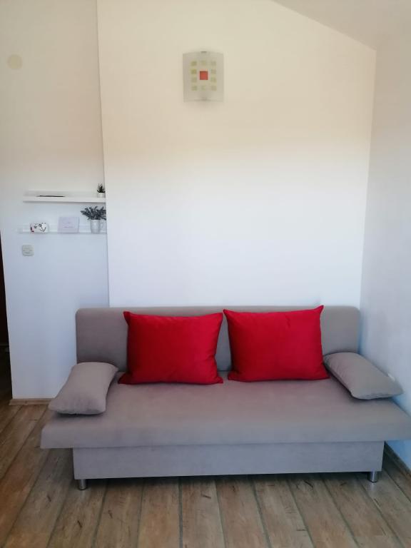 Stimați vizitatori! Va invitam sa vizitati un Ljubač mic sat situat în apropiere de orașul Zadar. În apartamentele situate pe plaja de nisip, puteți petrece o vacanță de familie plăcută Plaja este foarte potrivit pentru familiile cu copii mici sau pentru activități, cum ar fi volei pe plajă sau de apă. Apartamentele sunt situate la doar 20 de metri de mal, astfel încât puteți cu balcoane cu vedere la mare. De plaja de nisip este de aproximativ 50 m. Disponibil pentru a vă oferi o grădină mare, cu o terasă acoperită și grădină, unde vă puteți bucura de verdeață, grătar, iar copiii se pot juca pe trambulină, leagăne și un tobogan. De asemenea, oferim o parcare mare, precum și acces Wi-Fi gratuit. In apropierea Ljupco sunt 4 parcuri nationale! Orașul Zadar, care este bogat în patrimoniul cultural și istoric și oferta gastronomică bogata, udaljana de la Ljupco aproximativ 17 km, la doar 15 minute de mers cu mașina. Așteptăm cu nerăbdare să te văd! familia Dušević