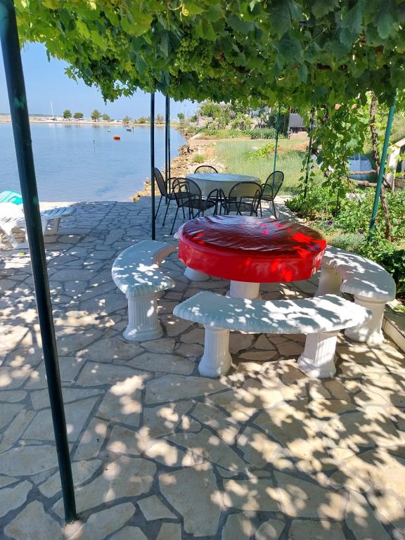 Apartamentele sunt situate în Mirko Ljubač -Zadar Dalmația de Nord. Apartamentele sunt situate în malul mării locul ideal pentru a vă relaxa pe terasa la umbra de viță de vie. Plaja este de nisip, ideal pentru copii. 17 km de Ljubco situat orașul Zadar unic in lume prin organe mării. Aproximativ 25 de km este Parcul Național, și aproximativ 35 km Lacurile Plitvice.