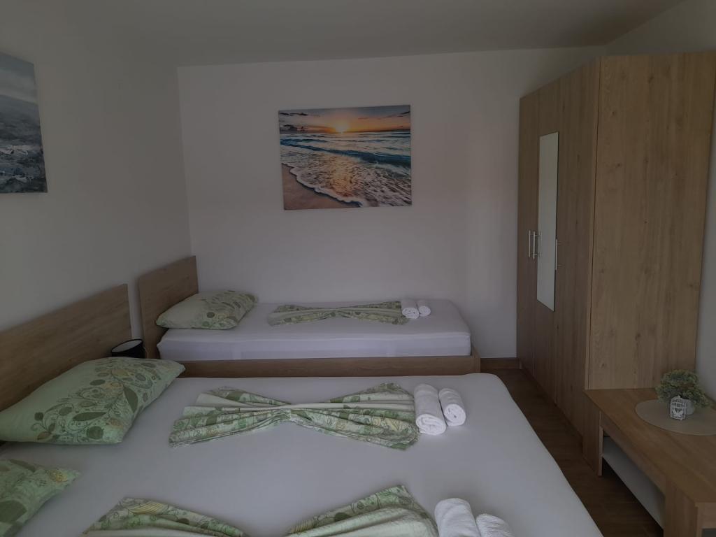 Taxa de rezidenta este inclusa in pret.Curățenia, echipamentele foarte potrivite, aer condiționat, paturile sunt mari, confortabile. Gospodinele sunt foarte amabile și de ajutor în orice. Plaja cu nisip este de 5 minute, cu vedere la mare. Parcarea este un pic înghesuită, dar cel puțin în comparație cu strada deja îngustă. Personal, nu o pot recomanda decât.
