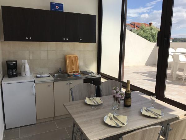 Apartamentele Pavlečić sunt situate în Lopar, pe insula Rab. Apartamentele constau din 6 apartamente separate. 4 apartamente sunt pentru 3 persoane, iar 2 apartamente sunt pentru 4 persoane. Fiecare apartament are intrare separata, bucatarie, baie, toaleta-dus, 1 sau 2 dormitoare, TV satelit, terasa cu masa si scaune. La parter se afla o terasa mare cu mese si scaune si un gratar care poate fi folosit de toti oaspetii. Distanta de la plaja este de numai 20 m Plaja este ideala pentru copii mici datorita marii putin adanci si a plajei cu nisip. Magazine, restaurante, oficiu postal sunt la 400 m.