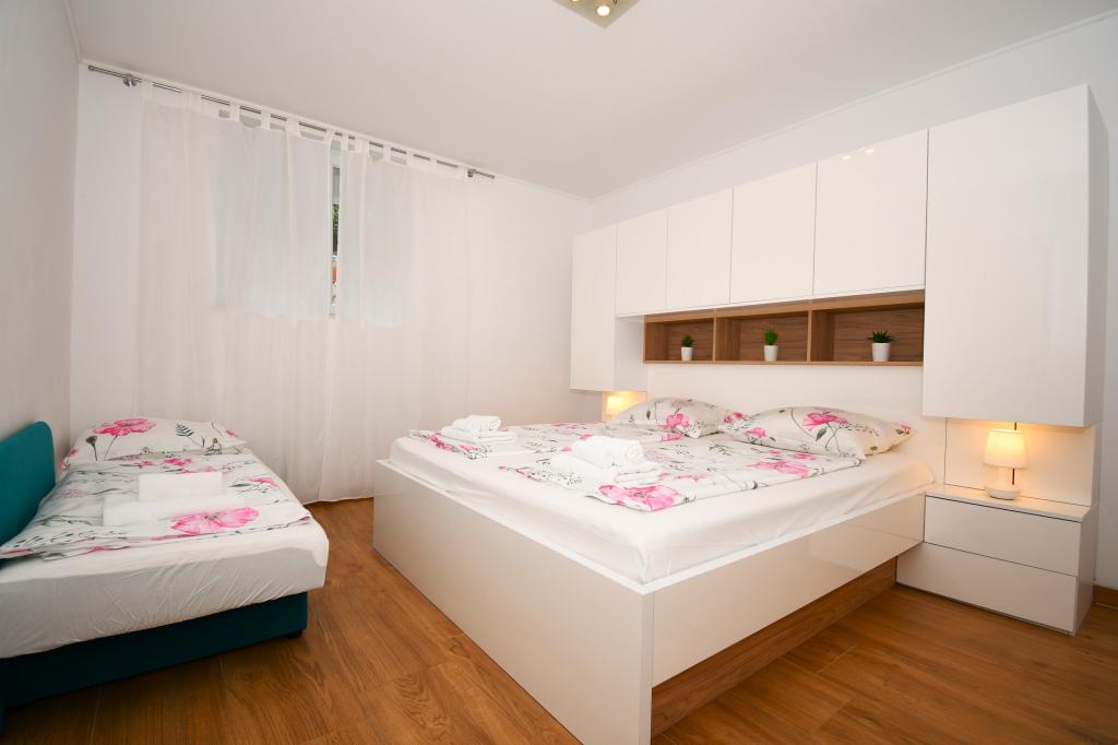 Suntem încântați să vă oferim un frumos și liniștit de apartamente în apropiere de plaja de nisip, ideale pentru familiile cu copii. La numai 15 de metri de casa este un parc pentru copii să se joace și să se relaxeze. Apartamentele au toate nevoie de oaspeții pentru o vacanță plăcută, și, de asemenea, putem oferi și barca de acostare. Lopar este recunoscut de către vegetație său distinctiv și 22 plajă astfel încât fiecare oaspete poate găsi ceva pentru tine, începând cu micul plaja la distanță, țiganul nudist, Rajka plajă sturič, Sahara și golful mic, dacă doriți o zi mai liniștită pentru înot și de relaxare. Aproape de casa este o pizzerie, precum și numeroase restaurante, care abundă în ofertă gastronomică excelentă. Facilități de sport, club de scufundari, si anumite facilitati pentru copii sunt, de asemenea, parte din locurile turistice. Pentru cei care iubesc adrenalina, există posibilitatea de liber alpinism Vela stin. Este ideal pentru cei cărora le place să meargă și să se bucure de natura pur neatins.
