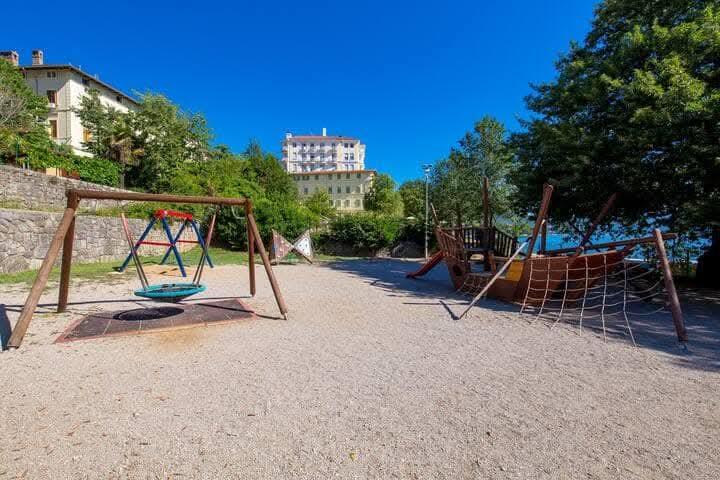 ️️️️️️ VILA ADELINA – Lovran, Riviera Opatija ️️️️️ Apartament luxos la doar 4 minute de mers pe jos de plajă ️ Rezervați-vă vacanța de neuitat într-o vilă luxoasă și romantică situată în inima orașului Lovran, la doar 4 minute de mers pe jos de marea cristalină! ️ Apartamentul de lux include: 2 dormitoare elegant decorate, cu paturi duble living spațios cu un pat suplimentar pentru confort maxim ️ 2 băi moderne cu echipamente de cea mai bună calitate bucătărie complet utilată (aparat de cafea, fierbător, prăjitor de pâine, cuptor, cuptor cu microunde, frigider mare cu congelator mare) balcon mare cu o vedere uimitoare asupra grădinii-parc cu palmieri și plante mediteraneene SAT/TV, internet Wi-Fi gratuit, aer condiționat pentru o atmosferă perfectă mașină de spălat pentru confort suplimentar parcare privată securizată în curtea clădirii ️ grădină cu grătar, mobilier de grădină, șezlonguri și leagăn, parcare privată, grătar
