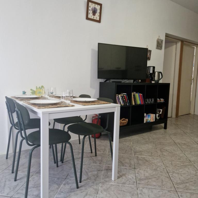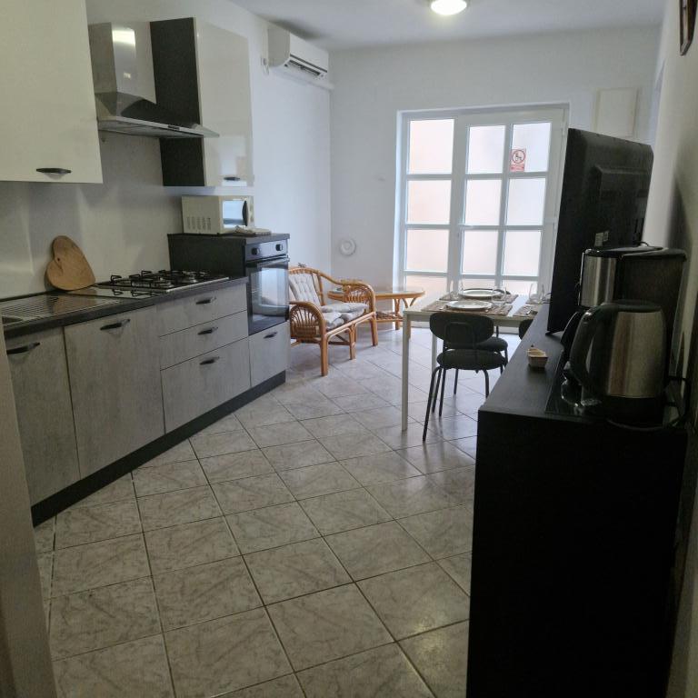 Dacă doriți să experimentați o mică bucată de paradis și tot confortul propriei case, vă așteaptă o casă chiar lângă mare, ideală pentru o vacanță liniștită și o priveliște de neuitat asupra insulei Pag și Velebit. Casa are 3 dormitoare (4+1), bucatarie, sufragerie, living, baie si depozitare (cu masina de spalat si frigider suplimentar). Camerele sunt dotate cu paturi care pot fi separate in doua paturi de o persoana daca este necesar, noptiere, o masa si un dulap. Fiecare cameră are acces direct la o terasă acoperită cu vedere la insula Pag. Baia are dus, toaleta, bideu si chiuveta. Curtea este legată de plajă. La intrarea principală există un grătar cu locuri suplimentare. Casa este situata sub nivelul drumului si este ascunsa vederii si a vecinilor intr-un mediu tipic mediteranean de pini, rozmarin si miros de sare. Animalele de companie sunt binevenite.
