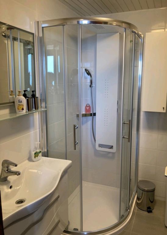 FACILITĂȚI ȘI SERVICII * max. capacitate: 4 + 2 persoane (inclusiv copii) * DB cu bucătărie + două dormitoare duș + două toalete * WI-FI + 2 smart TV * mașină de spălat vase și mașină de spălat * toate camerele sunt dotate cu aer condiționat * grătar în aer liber cu echipament * 3 terase pas la marea * fumatul permis în exterior * animale de companie - extra * parcare privată pentru 2 mașini * plajă privată