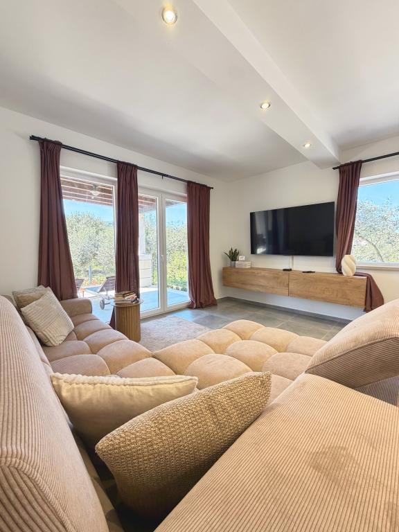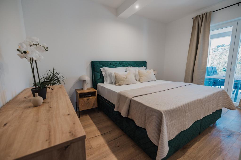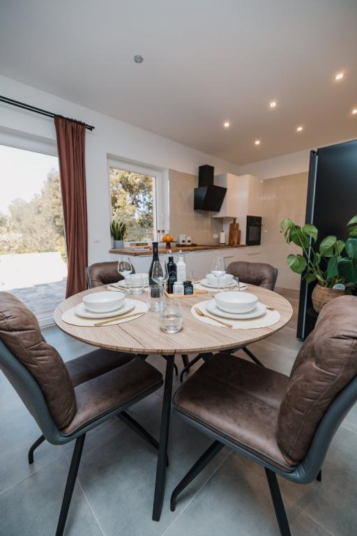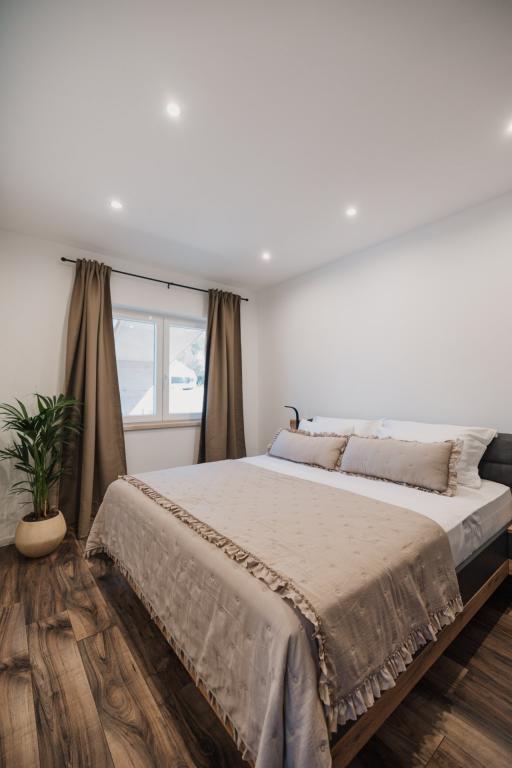 Un apartament recent renovat și modern utilat este de închiriat în Lumbarda, pe insula Korčula, situat în atmosfera autentică a unei plantații de măslini spațioase, care garantează oaspeților intimitate și liniște absolută. Apartamentul acoperă 75 de metri pătrați de spațiu interior, cu două dormitoare și două toalete, iar un accent deosebit este pus pe exterior, care include o terasă mare de 35 de metri pătrați și o grădină de 100 de metri pătrați, ideală pentru relaxare în singurătate. Interiorul este complet echipat pentru un sejur confortabil pentru patru persoane, inclusiv o mașină de spălat vase în bucătărie, o mașină de spălat rufe în baie, MaxTV și internet 5G rapid, iar pentru familiile cu copii mici, un pătuț este disponibil la cerere. Locația este o combinație perfectă între intimitate și apropierea de toate facilitățile; primul golf de înot este la doar 200 de metri distanță, centrul orașului este la 800 de metri distanță, în timp ce faimoasele plaje mari cu nisip fin sunt la aproximativ 2 kilometri distanță. Oaspeții au la dispoziție parcare privată în cadrul clădirii.