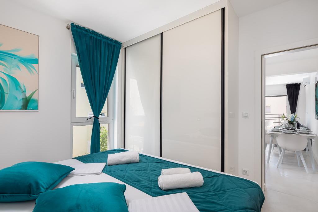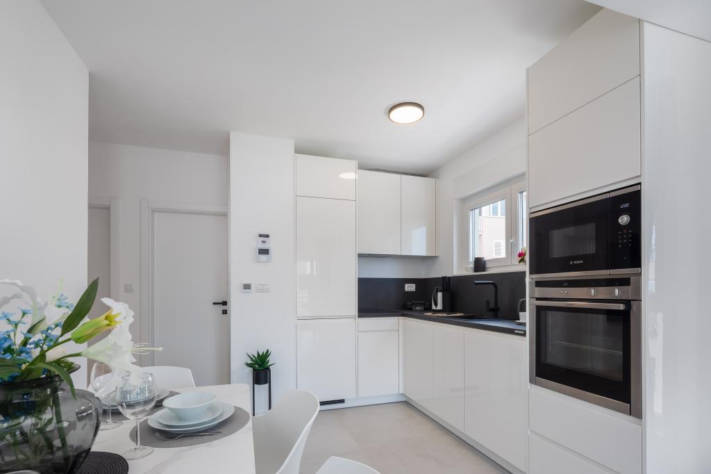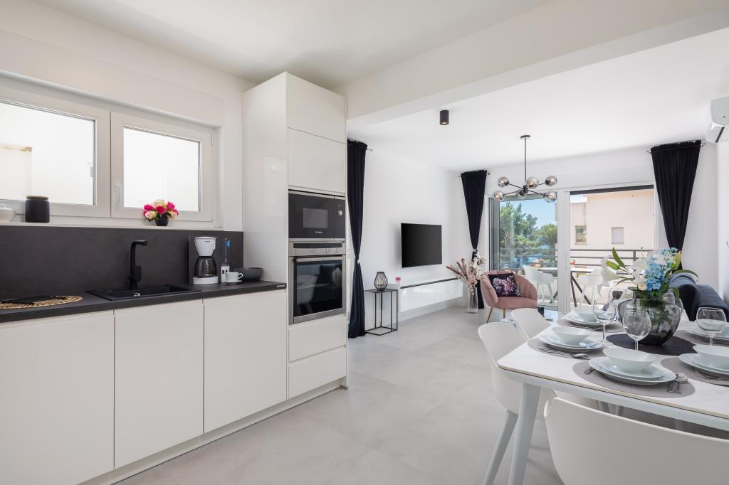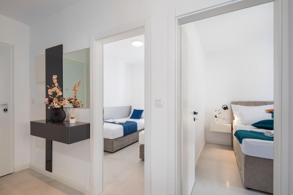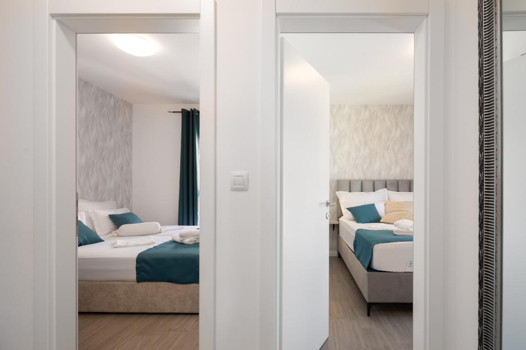Apartament Edvina este la 500 de metri de plajă. Oferă oaspeților acces ușor la frumoasa coastă adriatică, oferind în același timp un spațiu de locuit confortabil și modern. Apartamentul are două dormitoare, fiecare atent proiectat pentru a asigura un sejur liniştit şi confortabil. Dormitoarele sunt dotate cu paturi confortabile. Balconul oferă o vedere frumoasă la mare și la oraș. Parcarea este langa bloc.