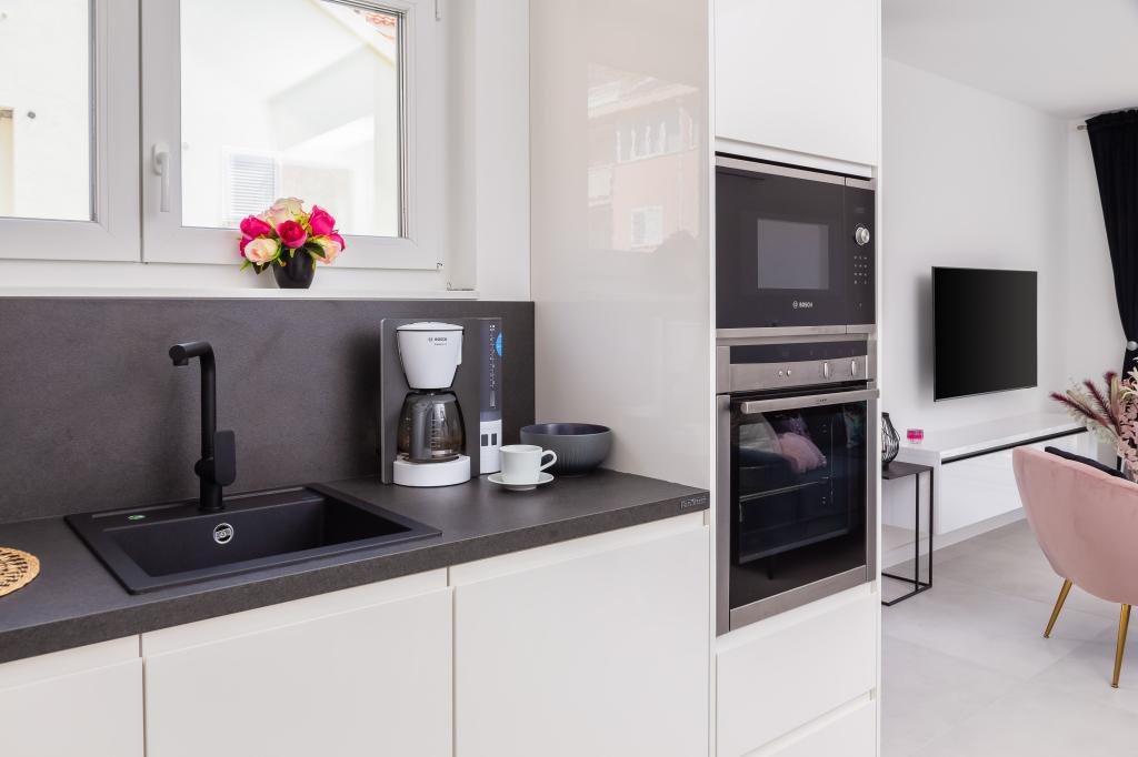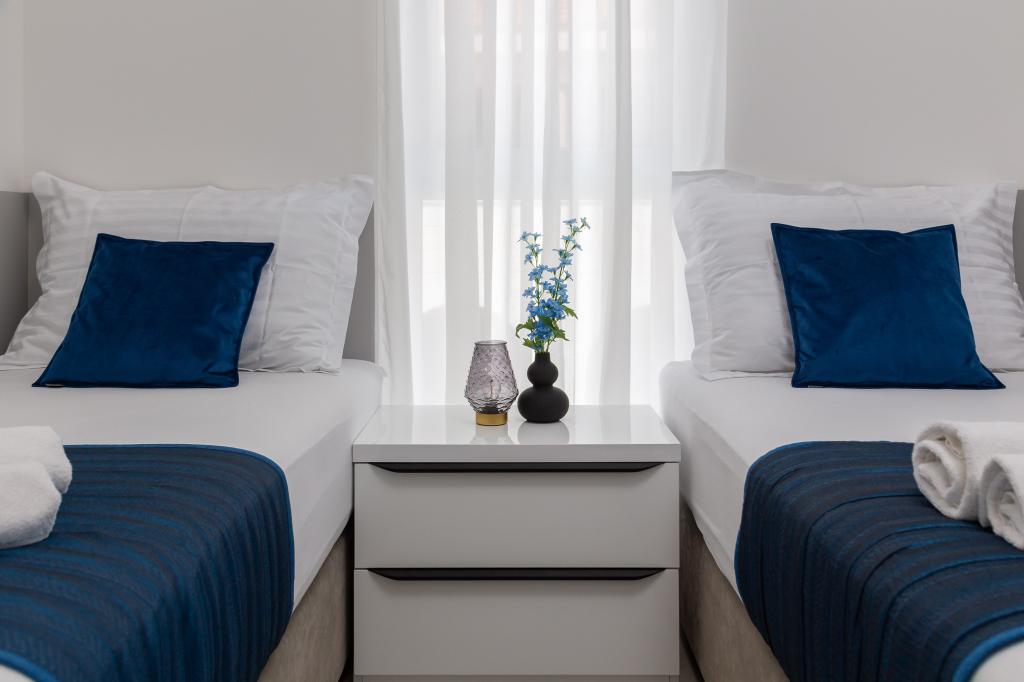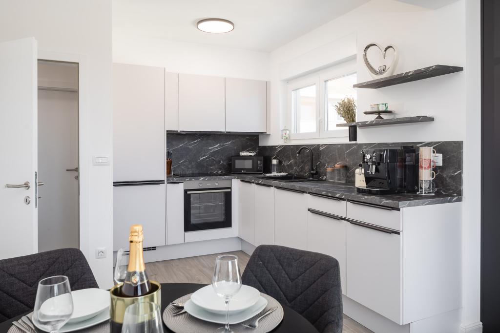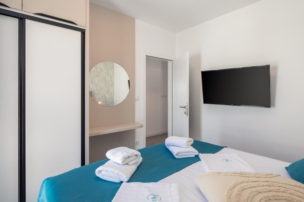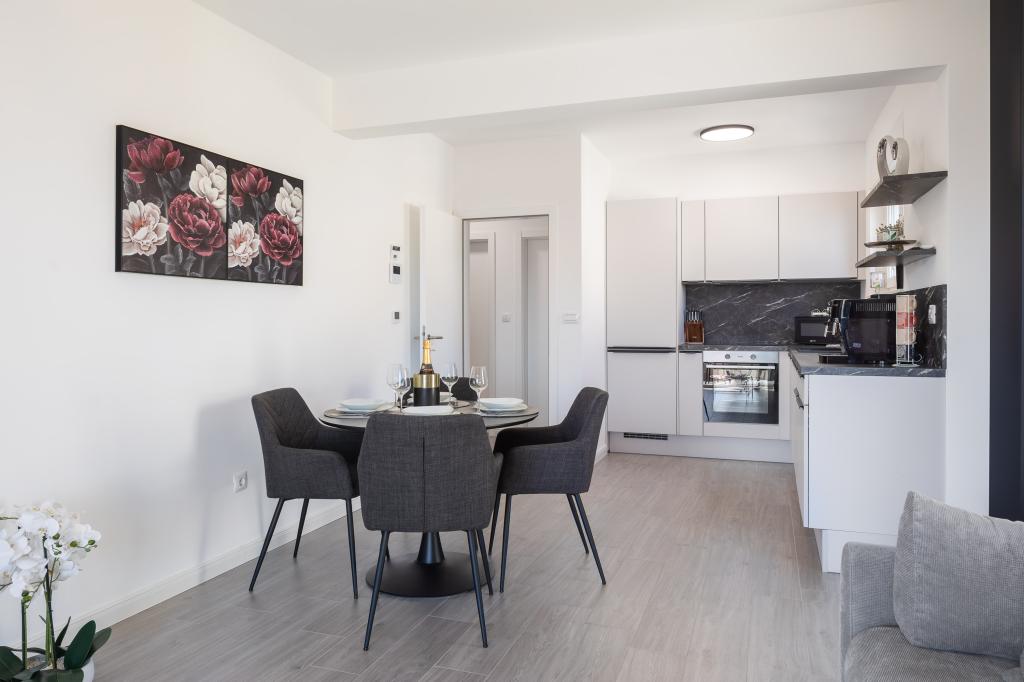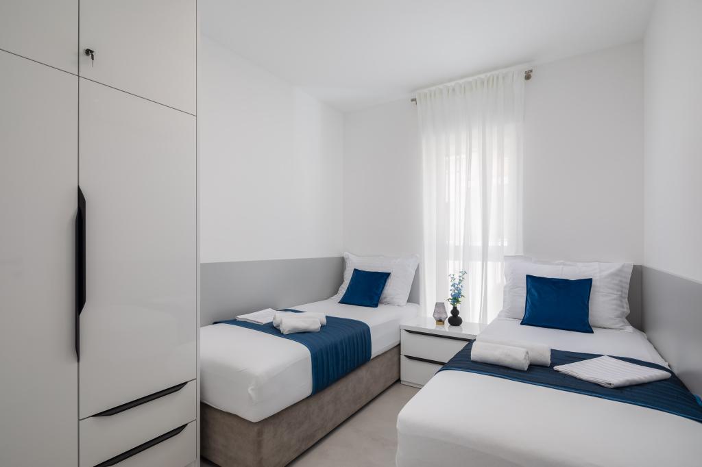 Apartament Edvina este la 500 de metri de plajă. Oferă oaspeților acces ușor la frumoasa coastă adriatică, oferind în același timp un spațiu de locuit confortabil și modern. Apartamentul are două dormitoare, fiecare atent proiectat pentru a asigura un sejur liniştit şi confortabil. Dormitoarele sunt dotate cu paturi confortabile. Balconul oferă o vedere frumoasă la mare și la oraș. Parcarea este langa bloc.