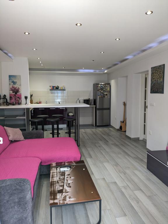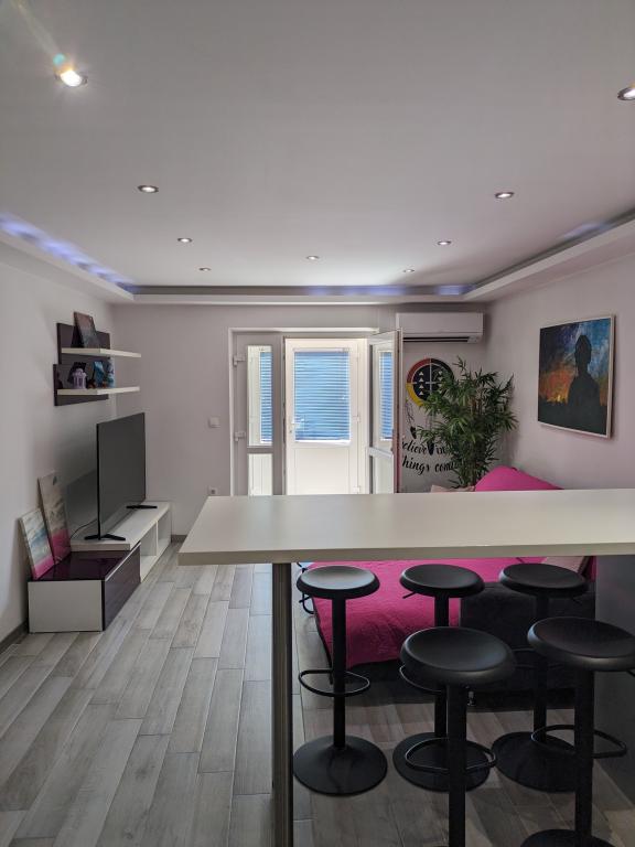 Bine ați venit în apartamentul nostru modern, recent decorat și situat central în inima orașului Makarska, pe cea mai veche stradă Kalalarga, chiar lângă piața principală. Apartamentul are două dormitoare, două băi, două aparate de aer condiționat, un televizor de 160 cm, Netflix, mașină de spălat vase, mașină de spălat rufe, o bucătărie complet utilată și o zonă de relaxare cu ferestre mari. Apartamentul este situat la parter și are două intrări separate. Complet separat de restul casei. Intimitate deplină. Animalele de companie sunt binevenite.