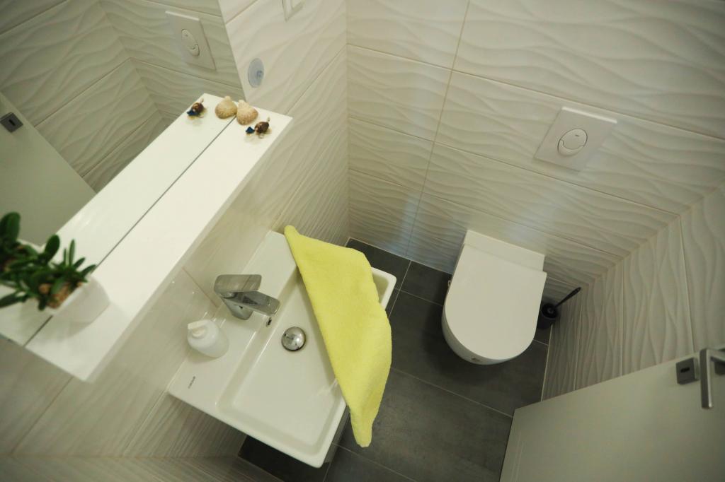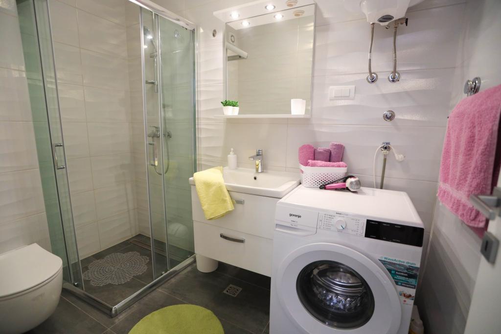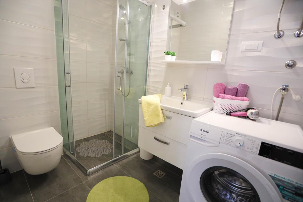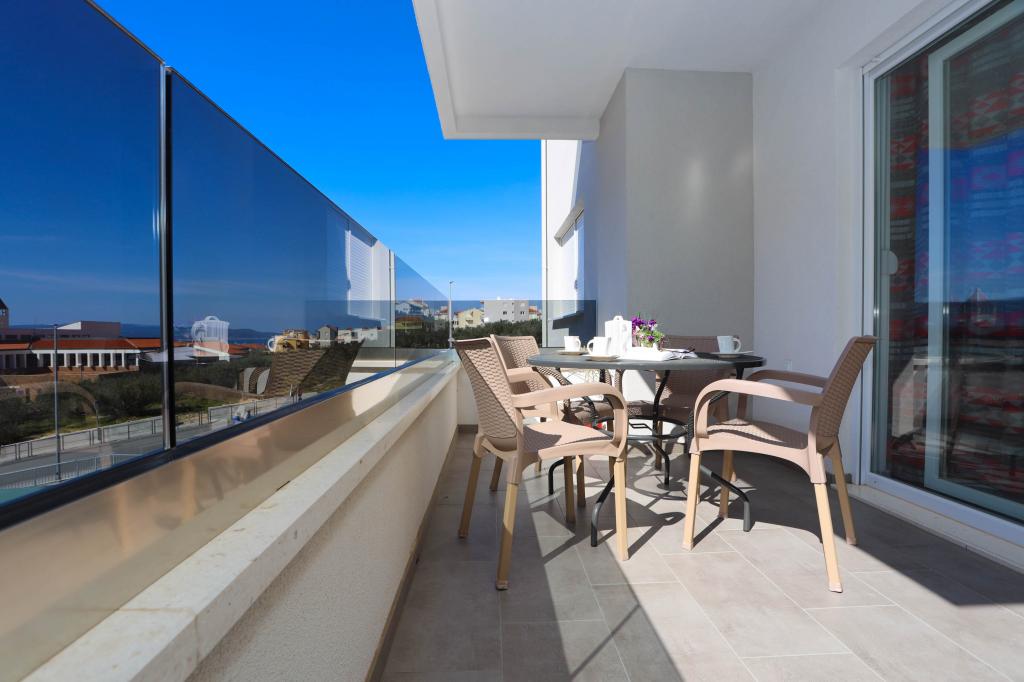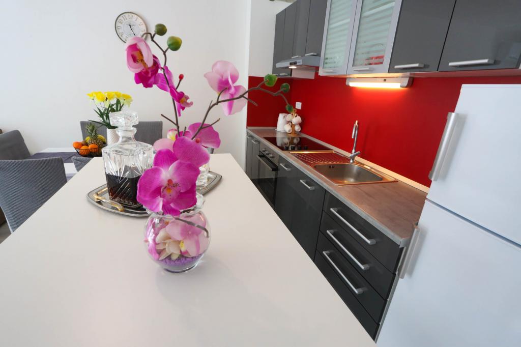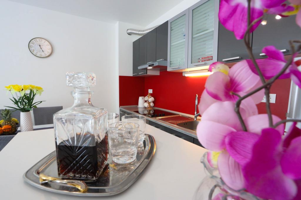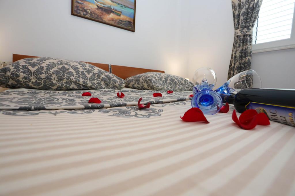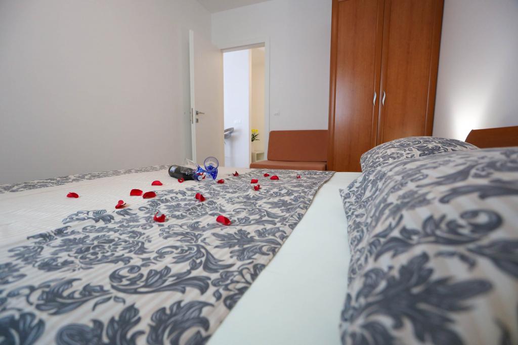 Apartament modern utilat, la primul etaj al unui bloc rezidențial nou, cu lift. Apartamentul are tot ce aveți nevoie pentru o ședere plăcută în vacanță. Apartamentul Petra este format dintr-o sufragerie cu bucătărie utilată, un living cu o canapea extensibilă care servește drept pat suplimentar, o baie și o toaletă mică și două dormitoare. O cameră are un pat dublu, iar cealaltă are două paturi care pot fi separate, dacă este necesar. Proprietatea este situată la 5 minute de mers pe jos de centru sau de cea mai apropiată plajă. În apropiere se află un magazin și un teren de sport pentru recreere.