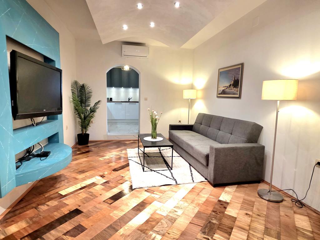Apartamentul Robert este situat la 400 m deasupra orașului vechi. Are o suprafață de 120 m2 și este format din două dormitoare, două băi, un living și o bucătărie. În fața apartamentului se află un jacuzzi, televizor, masă cu bănci, grătar, piscină cu șezlonguri și duș și parcare privată pentru mașina dumneavoastră. Bun venit!