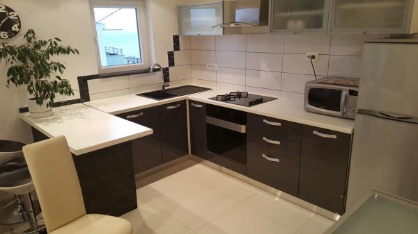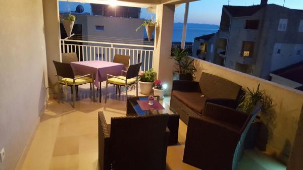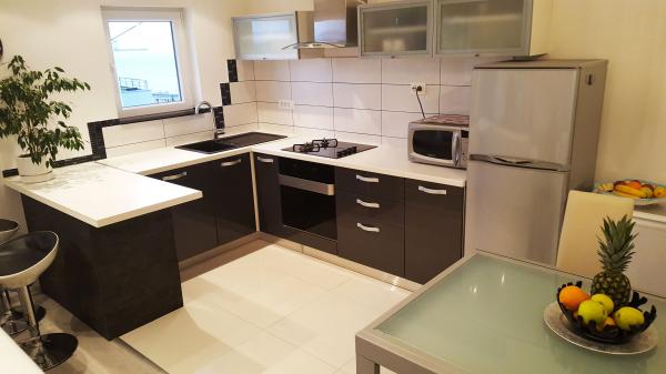 Apartamentul modern si complet mobilat in partea cea mai atractivă din Makarska. Imobilul este situat la 5 minute de mers pe jos de plajă și de promenadă plină de diverse facilități, cum ar fi baruri, restaurante, magazine de suveniruri și așa mai departe. În aceeași casă în cazul în care apartamentul este o farmacie și un supermarket. În apropiere de 10 la 20 m sunt liniștite cafenele, brutării, medic, pediatru, ATM-uri, magazine și chioșc de ziare. Apartamentul este compus din bucatarie, living, trei dormitoare, trei bai, terasa mare si balcon. Apartamentul are o vedere frumoasă la mare, insule, centrul orașului și pârtia de munte. Apartamentul este dotat cu aer condiționat, care este un pic în apartament, masina de spalat vase, masina de spalat, TV cu ecran plat set, WiFi gratuit, cuptor cu microunde. Oaspeții au acces la servicii de spălătorie și prosoape și alte negociabile.