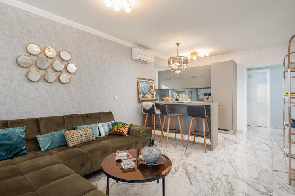 Experimentați combinația perfectă de confort și eleganță în Apartament Sara cu două dormitoare și două băi. Acest apartament modern oferă un balcon de unde vă puteți bucura de vedere la mare. Situat la 300 de metri de plajă, ai toate facilitățile necesare la îndemână, asigurând practic și simplitate. La 20 de metri se află o farmacie, un supermarket și o brutărie. Parcarea in garaj este inclusa in oferta.
