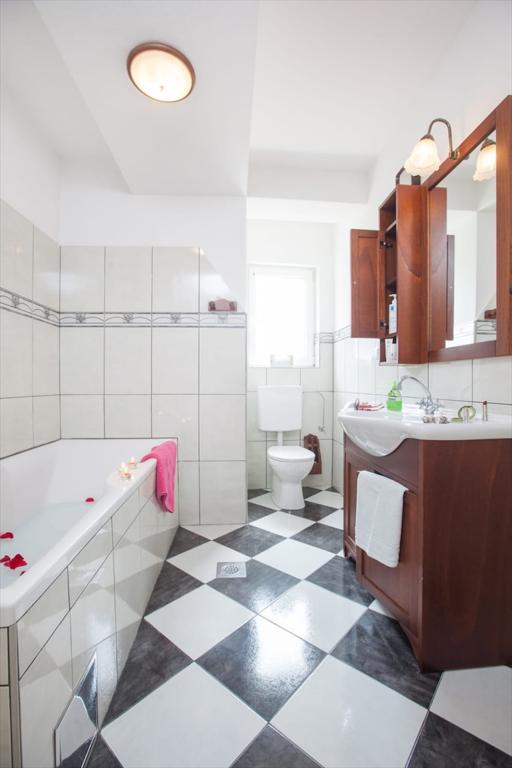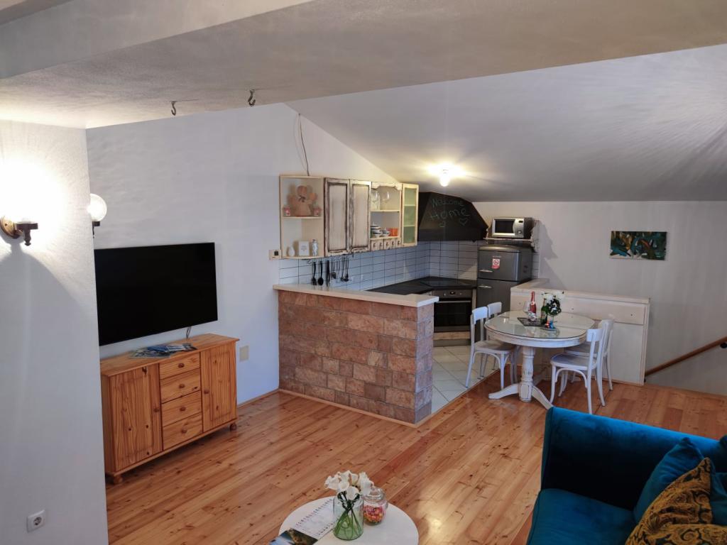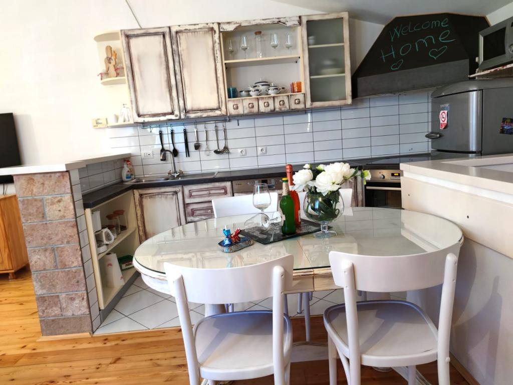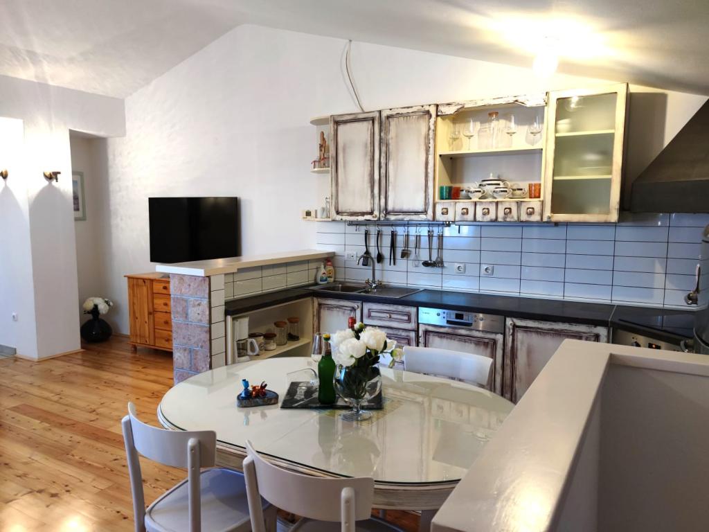 Apartamentul este situat la 50m de plaja. 200 m de centrul orasului. Când cobori 50 m, te afli pe promenada principală de-a lungul întregii plaje. La 100 m de apartament se afla magazine, macelarii, brutarii. Totul este la îndemâna ta. Păstrați-vă mașina și nu mai aveți nevoie de ea. Plaja este cu pietriș cu umbră naturală, pe plajă se desfășoară diverse activități pentru copii, restaurante... Apartamentul este complet echipat Smart TV 120cm Bucătăria este complet utilată cu ceainic, plită cu inducție, cuptor cu microunde, frigider + congelator, mașină de spălat vase și cuptor cu microunde.. WiFi, aer conditionat la ambele etaje 2 bai Masina de spalat 2 dormitoare 1 pat 180×200 2 pat 160×200