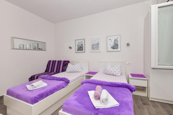 Apartamentele noastre sunt situate în apropiere una dintre cele mai frumoase plaje. Apartamentele sunt complet echipate și confortabile pentru șederea. Situat într-o zonă liniștită a orașului, și sunt ideale pentru vacanțe de familie și pentru cupluri. Plaja este situat la 100 m de casa, si se poate ajunge printr-o plimbare ușoară de 2-4 minute. Fiecare apartament are o mulțime de parcare in fata casei. Apartamentele Bernarda sunt situate în Makarska, la 100 de metri de stația principală de autobuz Makarska și la 400 de metri de port Makarska. Este disponibil Wi-Fi gratuit. Toate unitățile au o zonă de relaxare. Unele includ o terasă și / sau balcon cu vedere la mare. Toate apartamentele includ o bucătărie cu frigider și aragaz și o baie privată cu cadă sau duș. Oaspeții pot folosi facilitățile de grătar în apartamente Bernard. Apartamentele Bernarda sunt situate la 500 de metri de malul mării Makarska. Aeroportul Split este la 64 km.