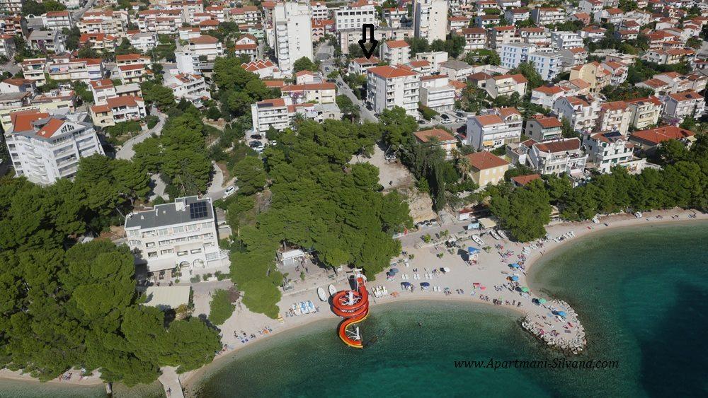 Apartamentele „Silvana” (patru apartamente și o garsonieră) sunt situate în centrul orașului Makarska, la doar 80 de metri de plaja de nisip a orașului, la care accesul este liber. Toate apartamentele noastre sunt dotate cu bucătărie, sufragerie, internet WiFi, TV prin satelit și balcon, adică o terasă, o curte sub coroana copacilor dalmați și cu miros de ierburi mediteraneene. Toate apartamentele sunt dotate cu centrala termica si aer conditionat. Sunt potrivite și pentru turismul de iarnă. Apa din casă la toate robinetele este potabilă. Toate apartamentele au parcare privată. App 4+2, 2 x App 2+2, App 4+ 1 și Studio au fost complet renovate și mobilate cu echipamente noi.