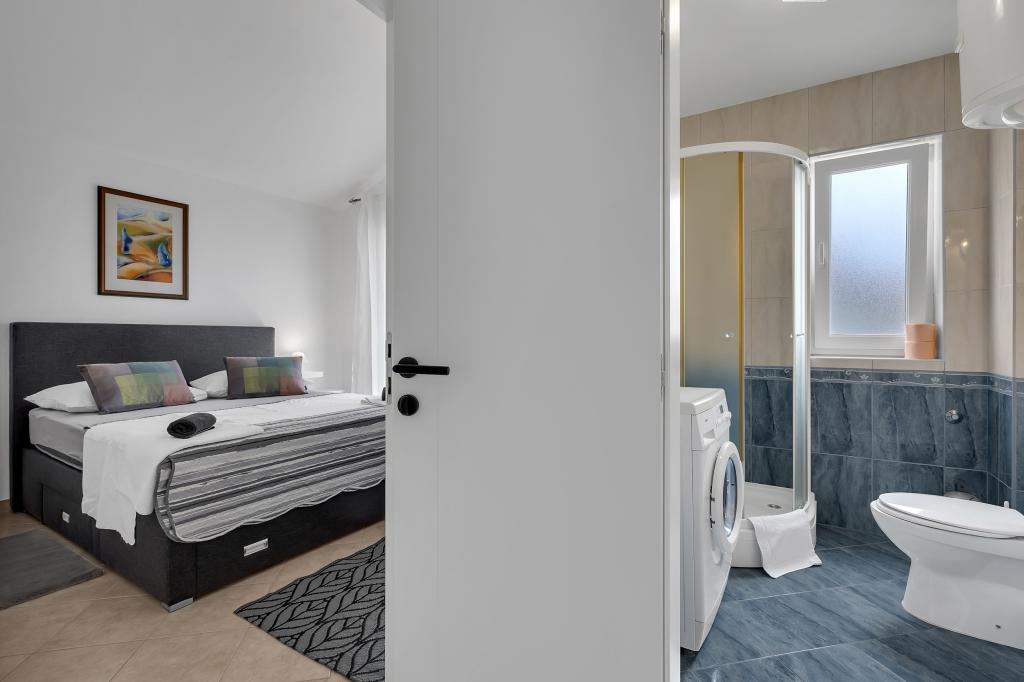 Ceea ce este cel mai important pentru mine cu copiii este un apartament curat, iar asta a fost excelent aici. Ne-a întâmpinat un apartament parfumat și foarte bine pregătit. Ana este o persoană foarte primitoare și i-a făcut pe copii fericiți imediat cu bomboane și fructe proaspete răcite. Plaja este la doar 2-3 minute de mers pe jos și totul este în apropiere, de la o mică piață, brutărie până la magazine. Parcarea este acoperită cu verdeață, astfel încât mașina să fie protejată și de soare în timpul șederii dumneavoastră. Vă recomandăm cu căldură Apartments Vanda pentru un sejur plăcut și plăcut în Makarska.