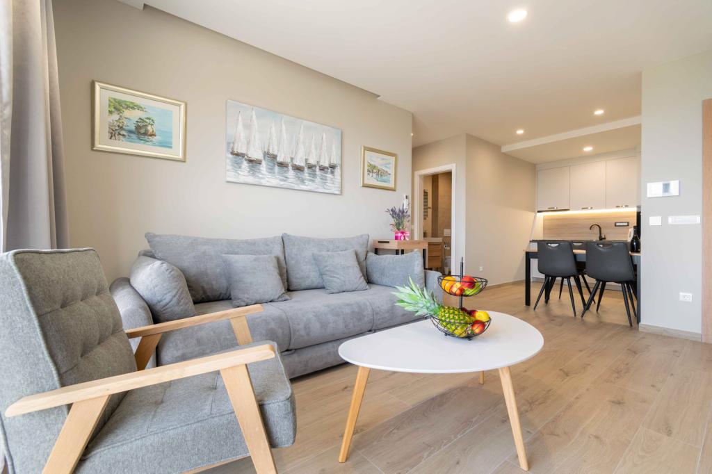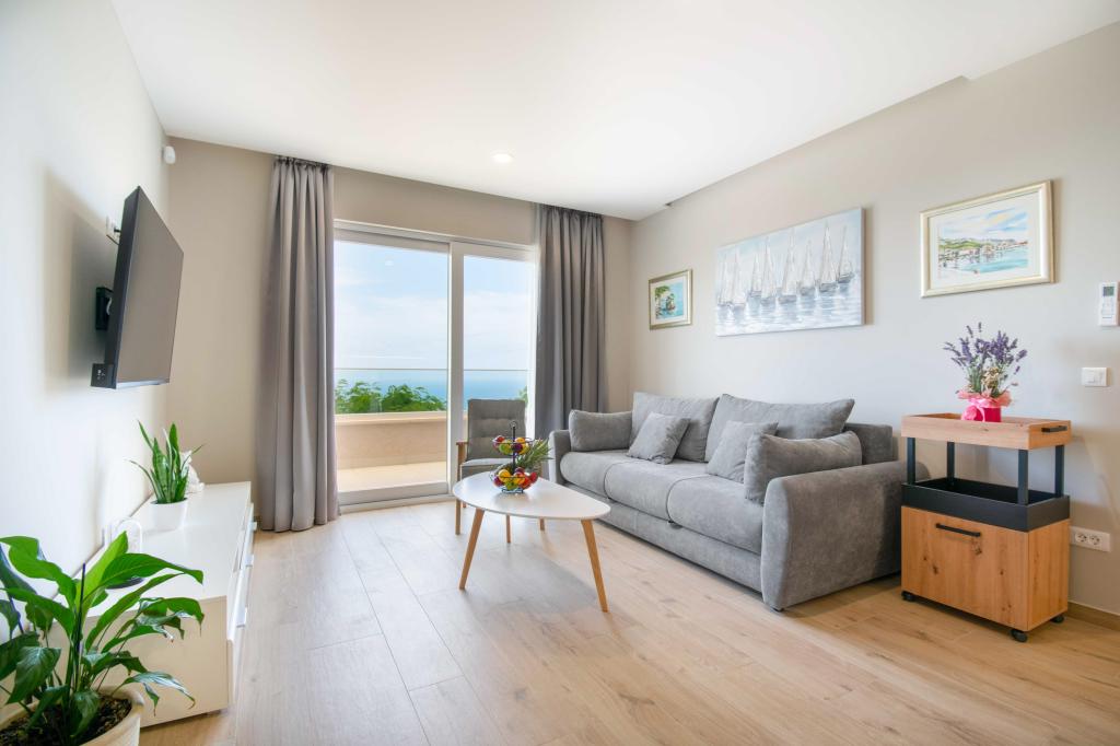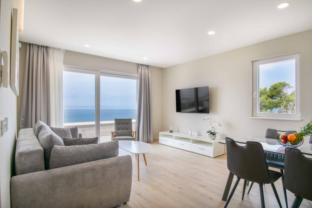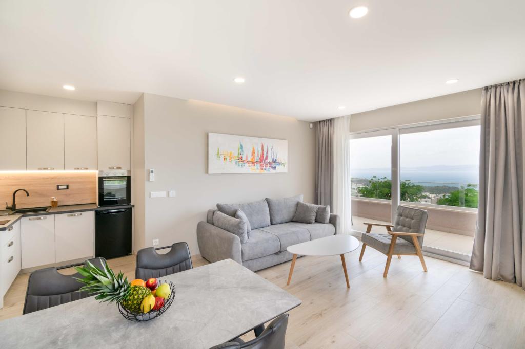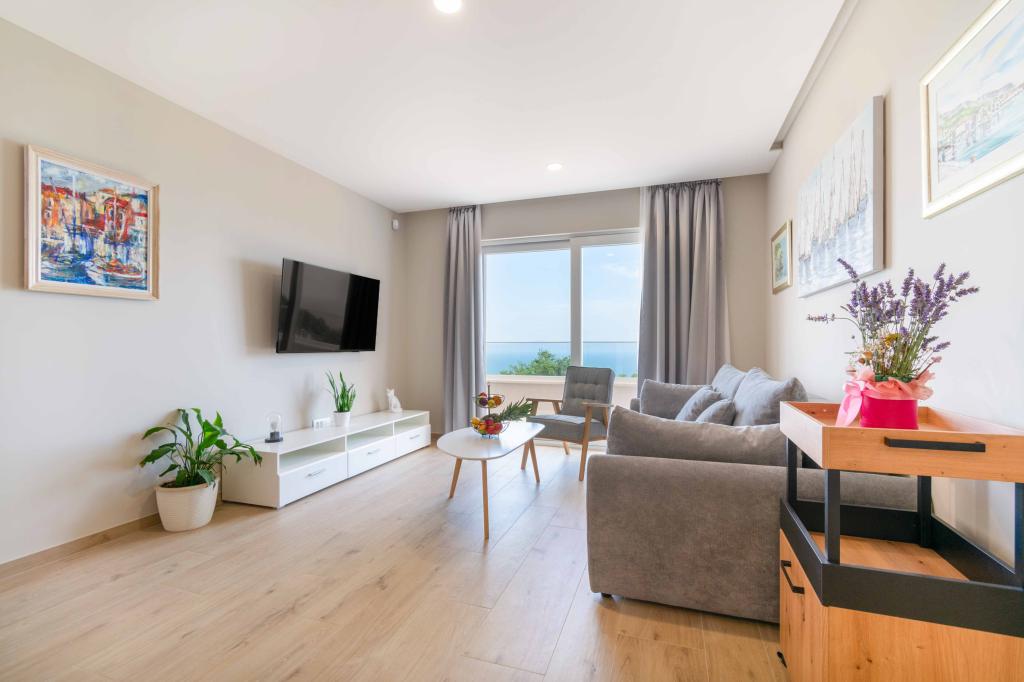 Apartamente moderne 2+2 cu vedere la mare în Makarska Apartament modern de 50 m². 1 dormitor, 1 baie, bucatarie complet utilata. Vedere frumoasă la mare. Apartamentele includ un loc de parcare in fata blocului. Aranjați o vizionare astăzi și faceți din acest apartament noua dvs. casă.