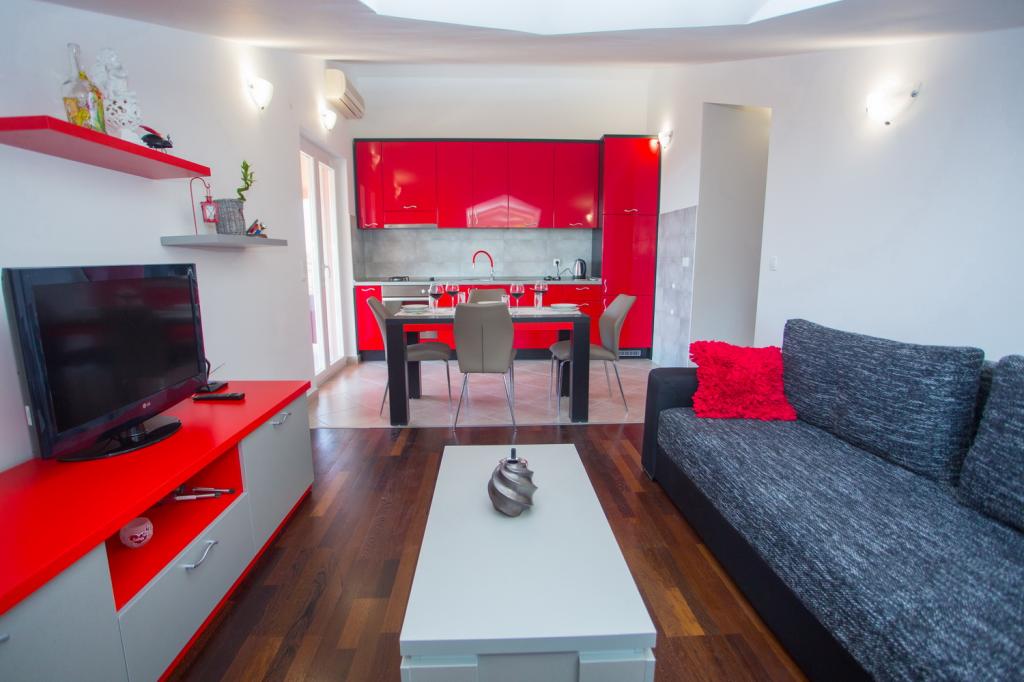 Apartamente complet echipate și modern, într-o zonă liniștită din Makarska, situată lângă mare. Facilitatea este situată la 20 de minute de mers pe jos până la centru și la 15 minute de mers pe jos până la prima plajă. Apartamentele ideale pentru 4 persoane au un dormitor și o canapea extensibilă mare în camera de zi. Apartamentul are o terasă acoperită de 16 m2, ideală pentru după-amiaza și plăcerea de dimineață devreme în fața casei și parcare securizată. Preturile se determina numai la cerere, in functie de durata sejurului, aprobam discountul, se acorda reduceri suplimentare la anumite rezervari.