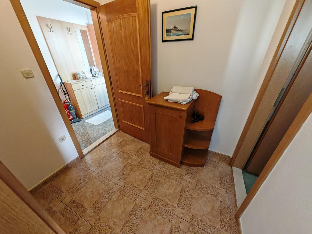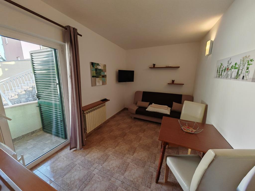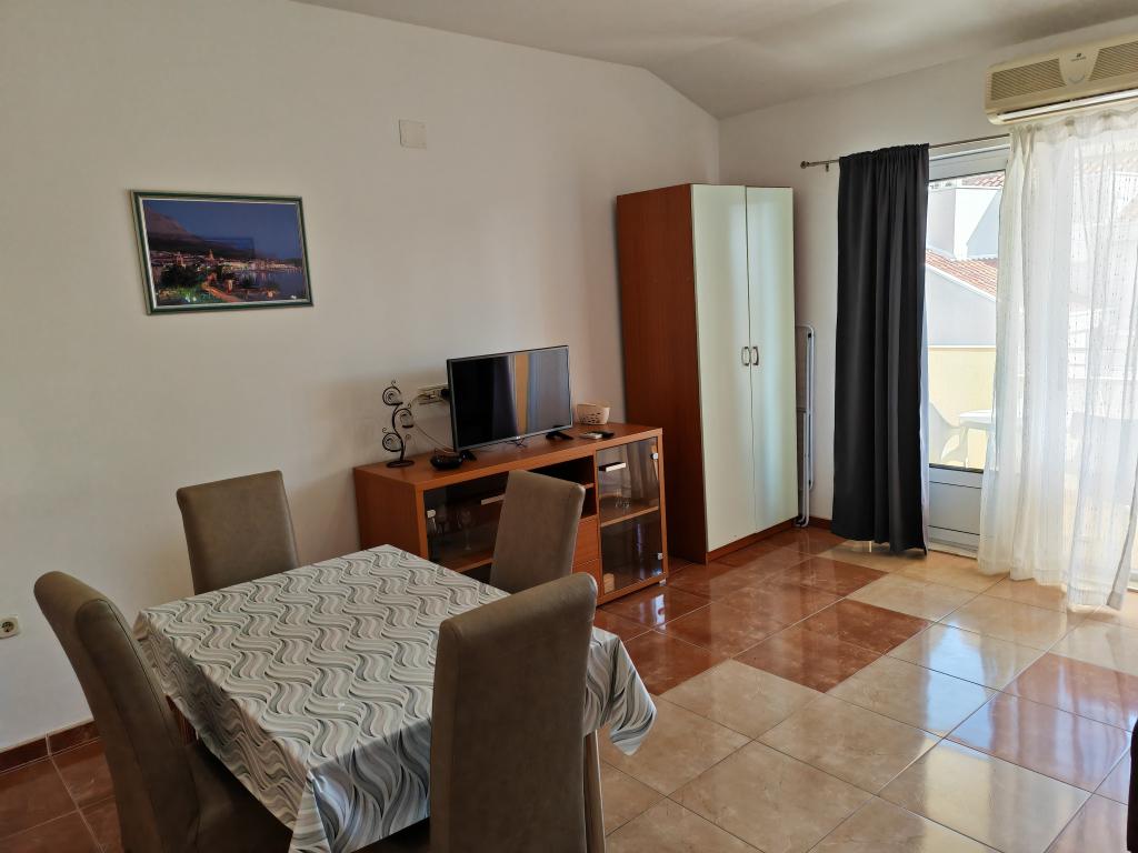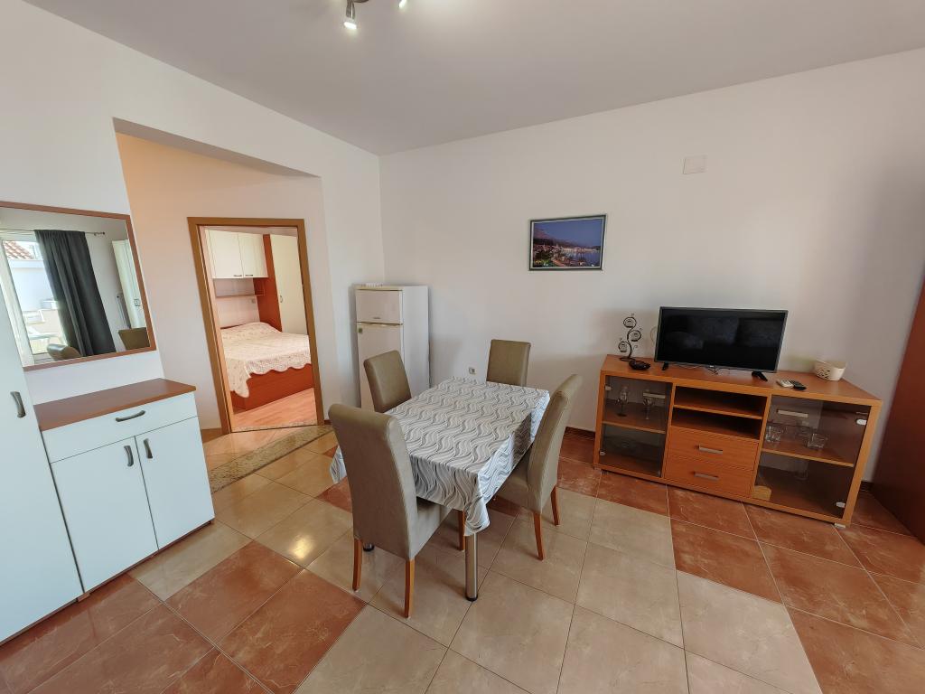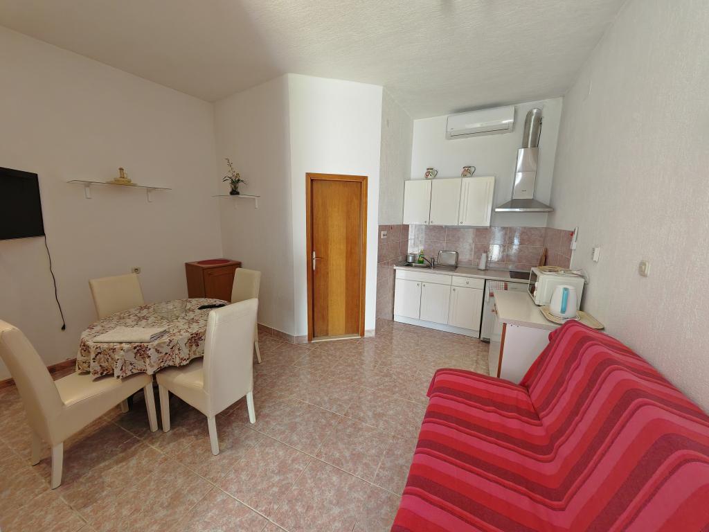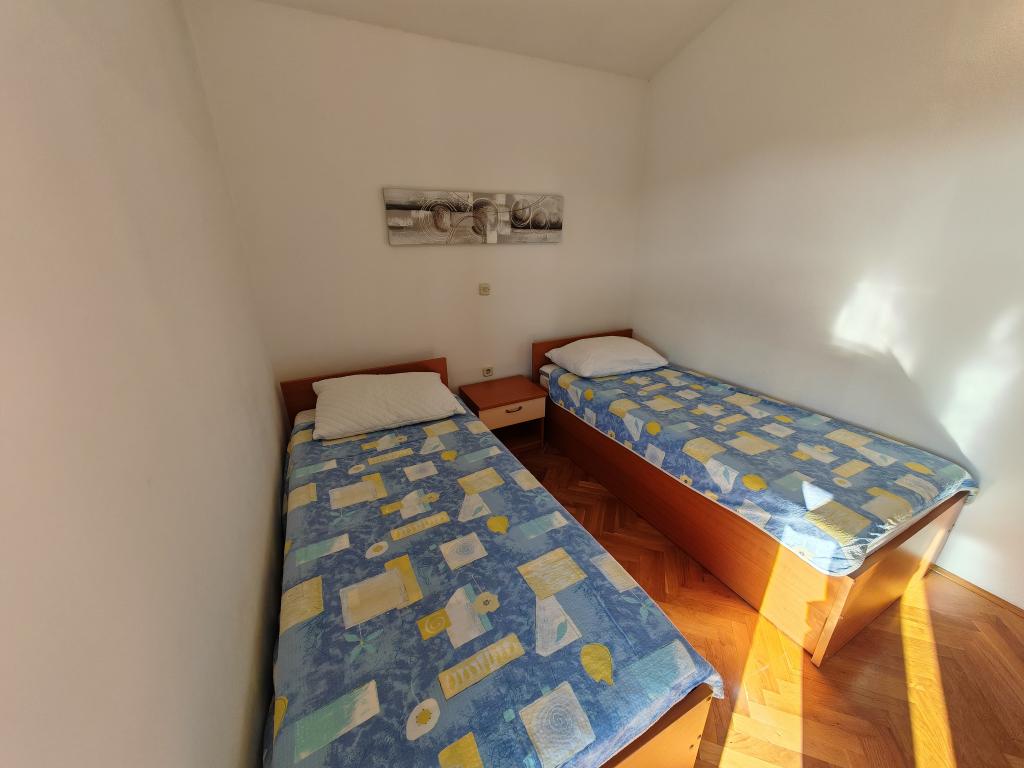 Apartamente la parter, la primul și al doilea etaj al clădirii de apartamente, în imediata vecinătate a plajei, la aproximativ 100 de metri distanță. Fiecare apartament are un balcon frumos și confortabil, cu vedere la mare, wi-fi gratuit, loc de parcare gratuit în fața clădirii. Apartamentele sunt potrivite pentru familii mici sau pentru 3 adulți, un cuplu cu unul sau doi copii mici, cu excepția apartamentului 5, care este potrivit pentru 5 persoane. Locația excelentă și dotările excelente garantează o vacanță plăcută petrecută în apartamente. Distanța până la centrul orașului este de aproximativ 500 de metri, sau o plimbare ușoară de 10-15 minute de-a lungul promenadei de-a lungul plajei.