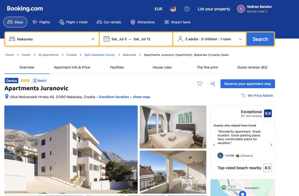 Situat în Makarska, la doar 250 de metri de plaja Makarska, Apartments Juranović oferă cazare cu vedere la mare, WiFi gratuit și parcare privată gratuită. Toate unitățile din complexul de apartamente sunt dotate cu aer condiționat, zonă de relaxare, TV cu ecran plat, bucătărie, zonă de luat masa și baie privată cu uscător de păr, duș și mașină de spălat. De asemenea, sunt disponibile un cuptor, un frigider și plită, precum și un fierbător. Personalul nostru este disponibil pentru sfaturi și asistență pe tot parcursul șederii dumneavoastră.