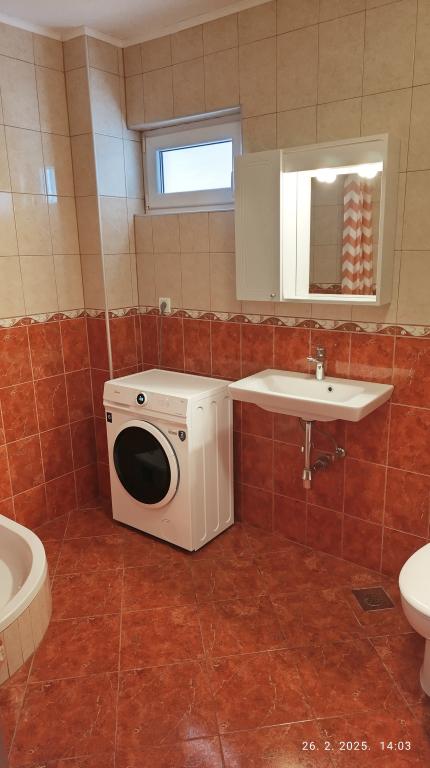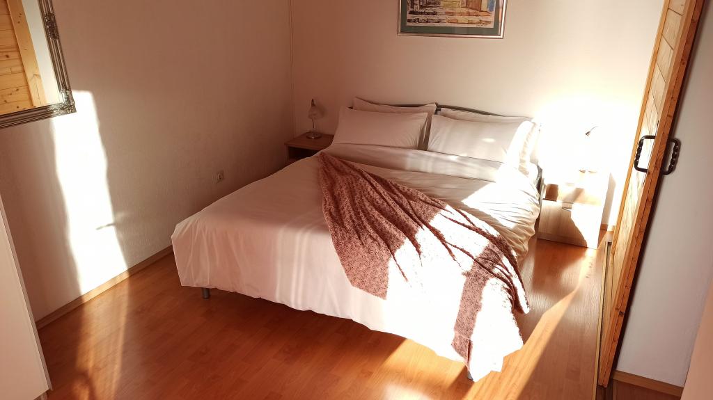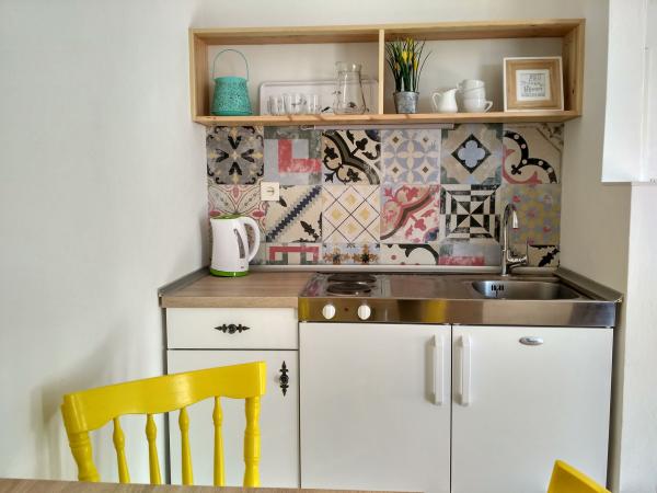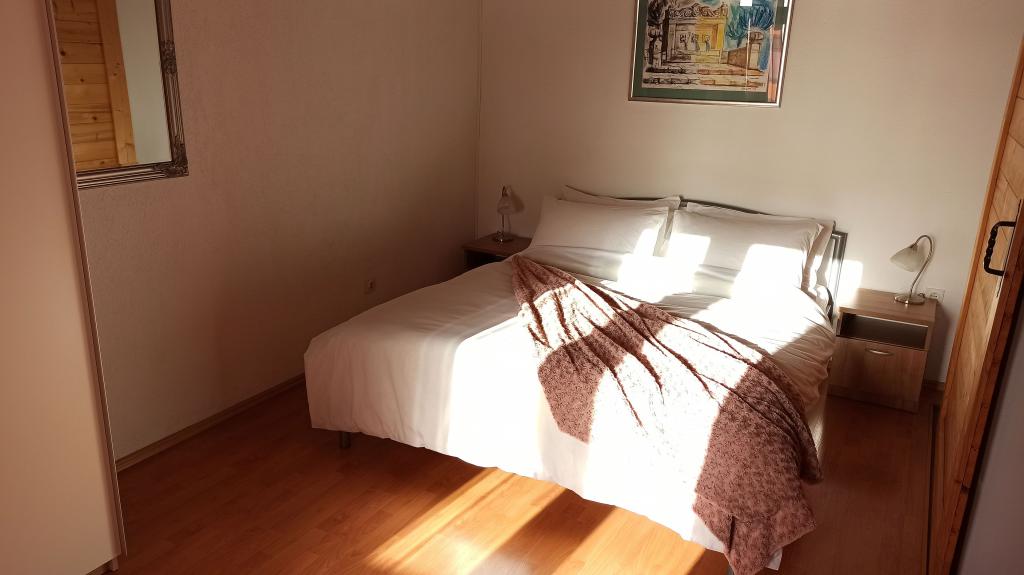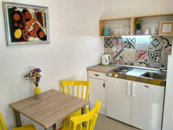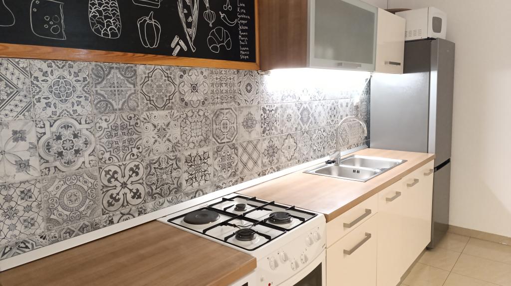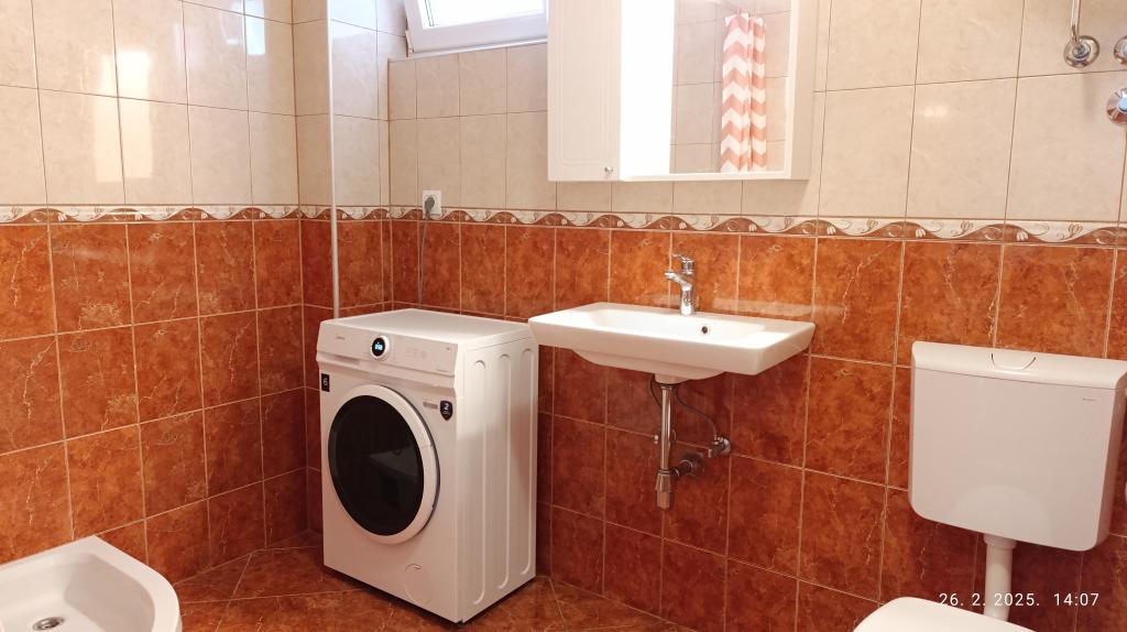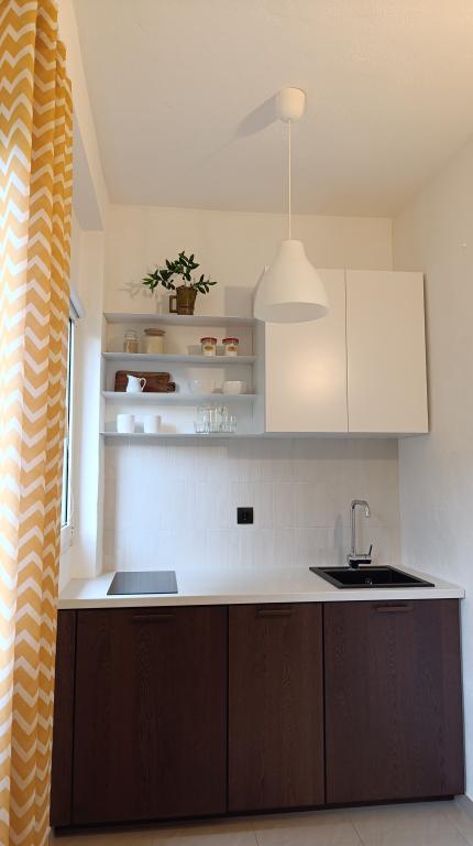 Apartamentul este modest, dar are tot ce ai nevoie în vacanță. Există chiar și un fier de călcat, spre marea încântare a soțului meu, haha. Poți găti cu ușurință cina în apartament, poți spăla rufele de mână (sunt frânghii de rufe afară, la fereastră). Cartierul este liniștit și pașnic, cu vedere la doi copaci frumoși: un smochin și un măslin, și la muntele dincolo. Kruno, gazda noastră, este foarte prietenos și serviabil. Ne-a întâmpinat cu un zâmbet și ne-a luat rămas bun cu același zâmbet. Mulțumim, Kruno, pentru o ședere minunată!