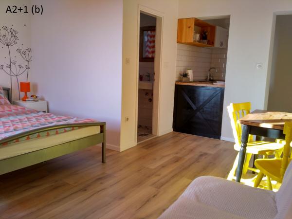 Recomand cu căldură apartamentele Kruno. Am stat în apartamentul de 7+2, 3 adulți și 4 copii. Apartamentul este spațios, curat și confortabil. Are tot ce ai nevoie pentru viața de zi cu zi, făcându-te să te simți ca acasă. Prețul este foarte accesibil. Este aproape de plajă, brutărie și piață. Locația este perfectă; nu trebuie să mergi mult pe deal. Îl recomand cu căldură.
