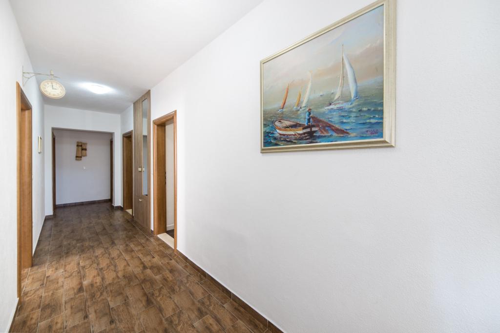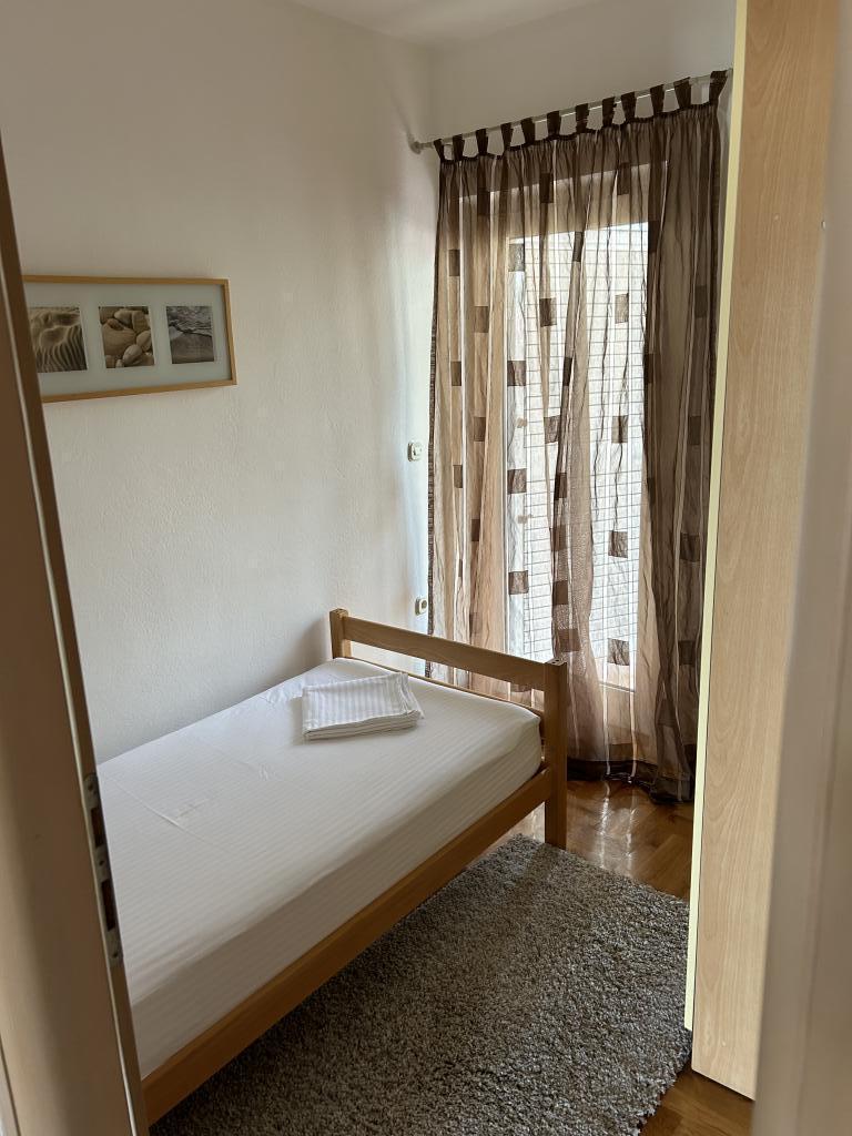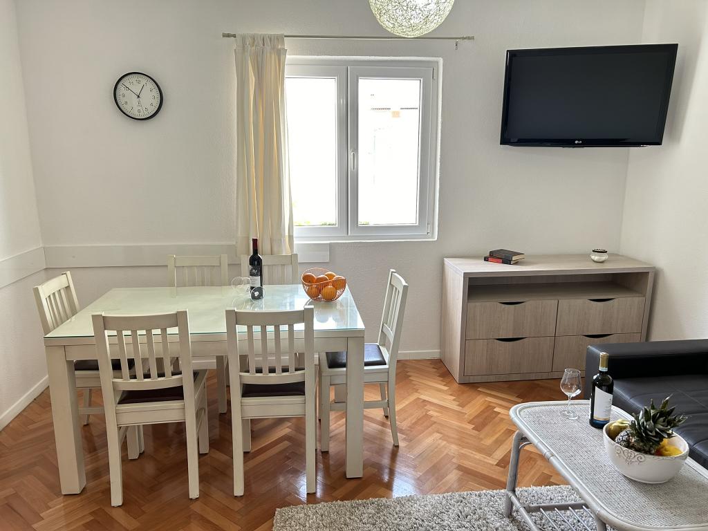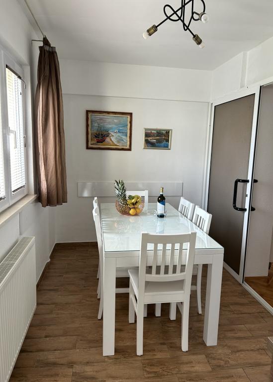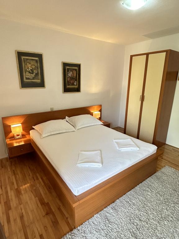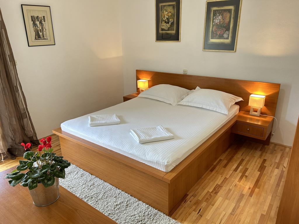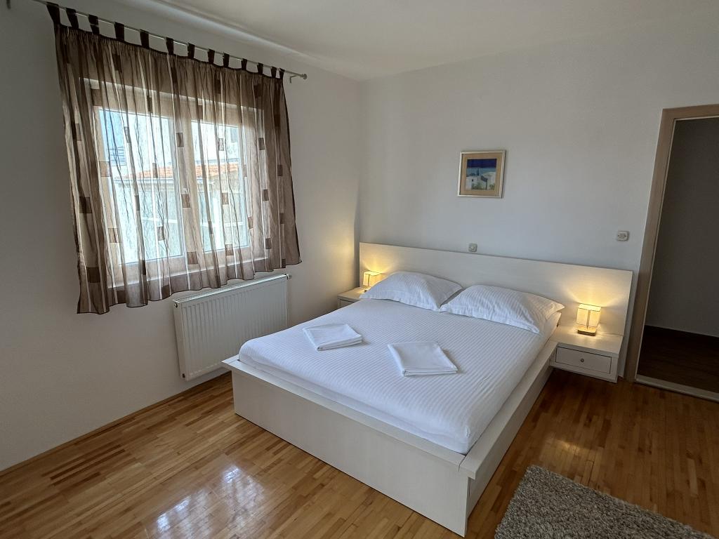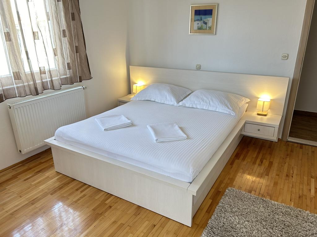 Lena Apartamentul este situat in Makarska, 300m de la centru. Se compune din 4 dormitoare, doua bai, bucatarie complet utilata, living si sufragerie. Există două terase, aer conditionat, televizor, maşină de spălat şi de parcare pentru 2 autoturisme (incluse in pret). Există, de asemenea, un grătar afara. Lenjerii de pat şi prosoapele sunt incluse.