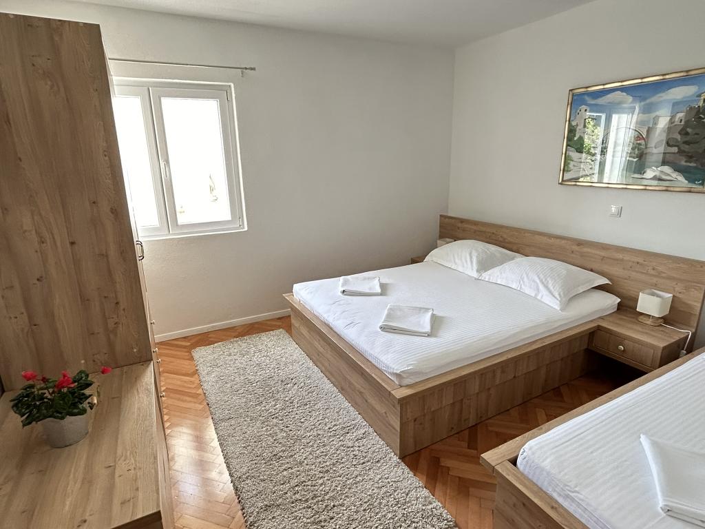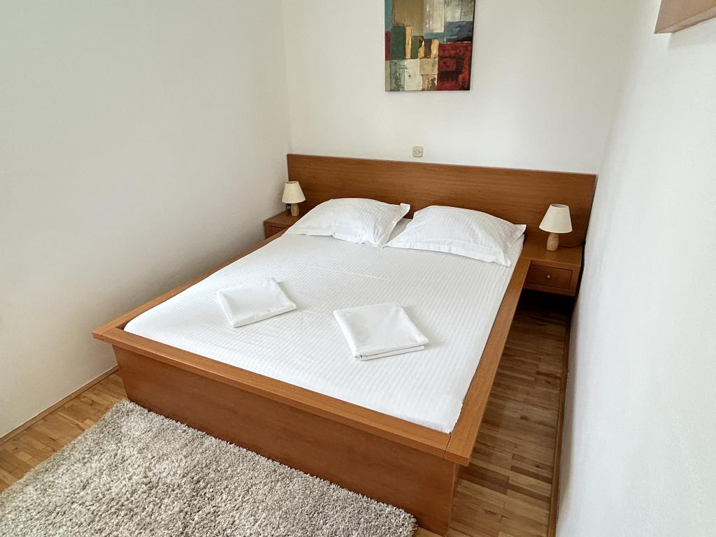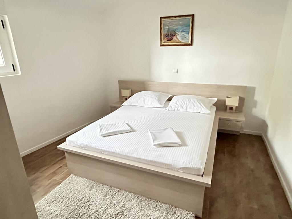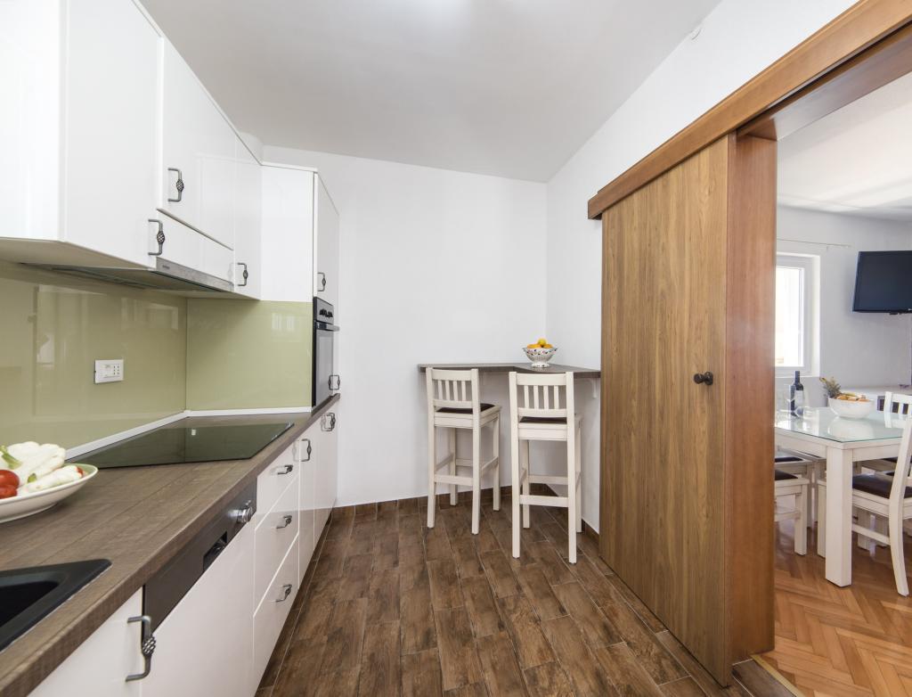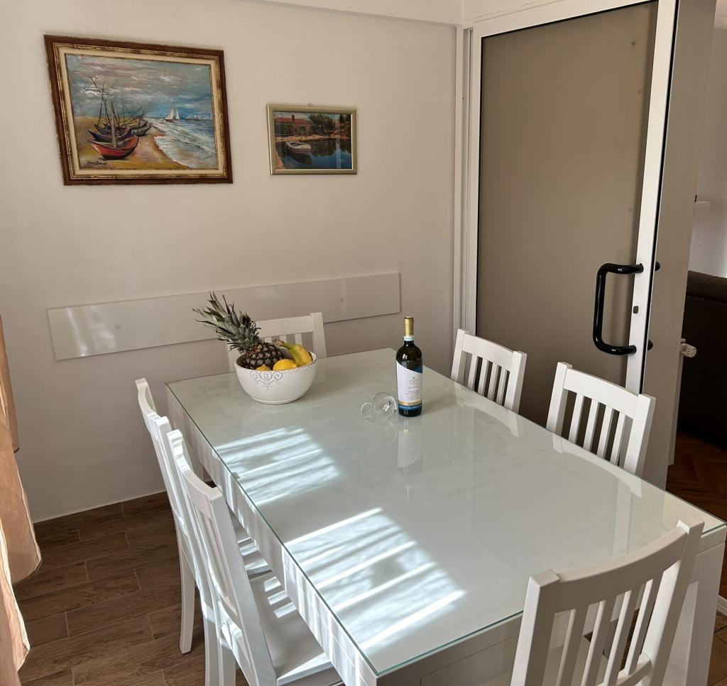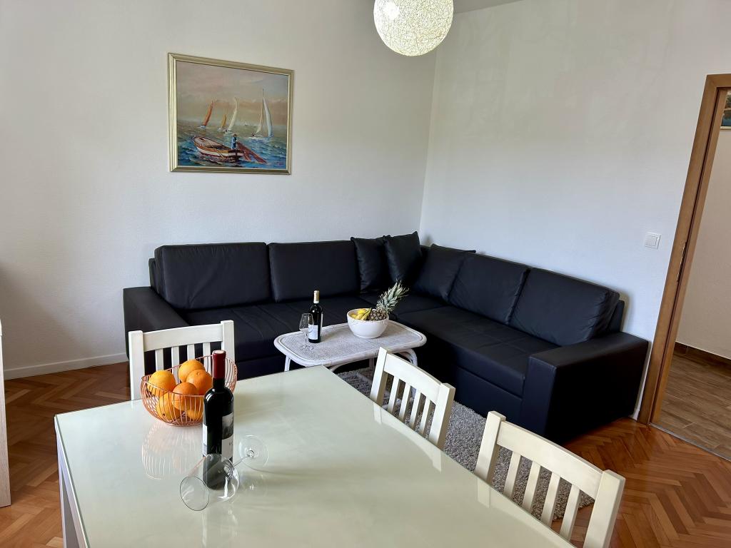 Lena Apartamentul este situat in Makarska, 300m de la centru. Se compune din 4 dormitoare, doua bai, bucatarie complet utilata, living si sufragerie. Există două terase, aer conditionat, televizor, maşină de spălat şi de parcare pentru 2 autoturisme (incluse in pret). Există, de asemenea, un grătar afara. Lenjerii de pat şi prosoapele sunt incluse.
