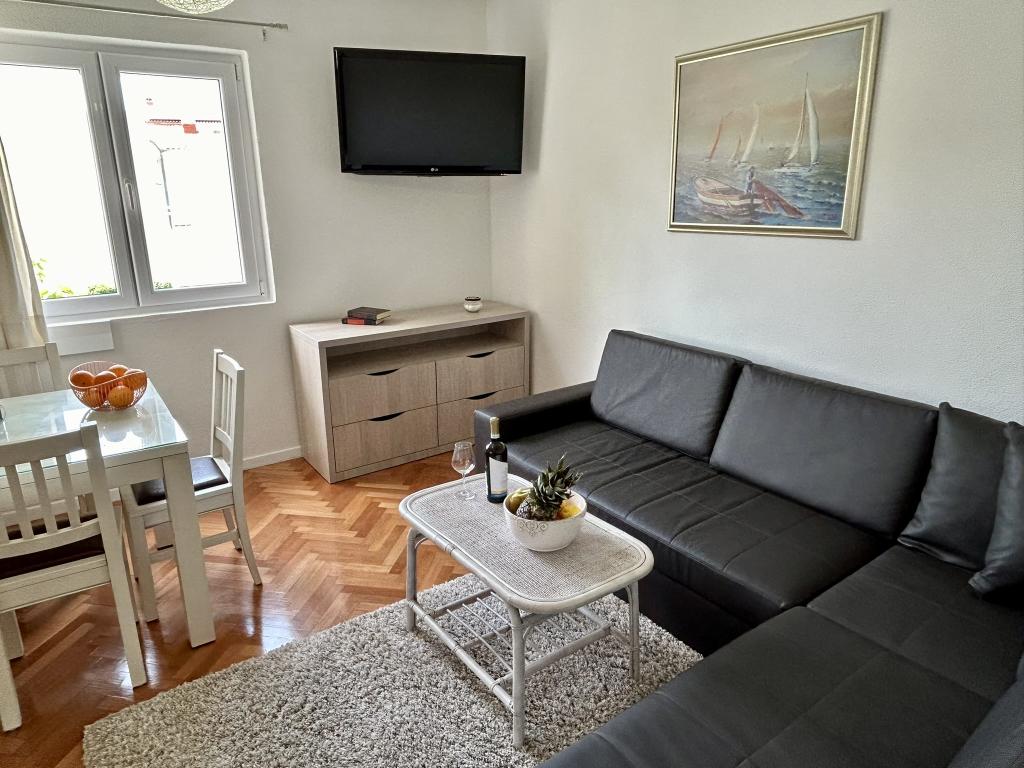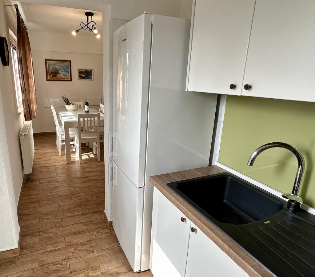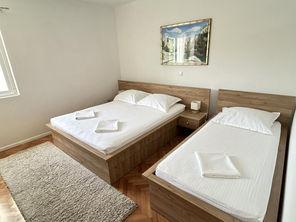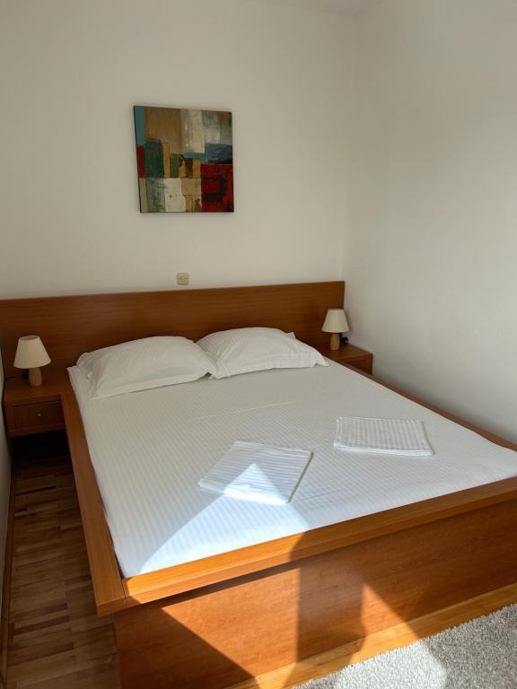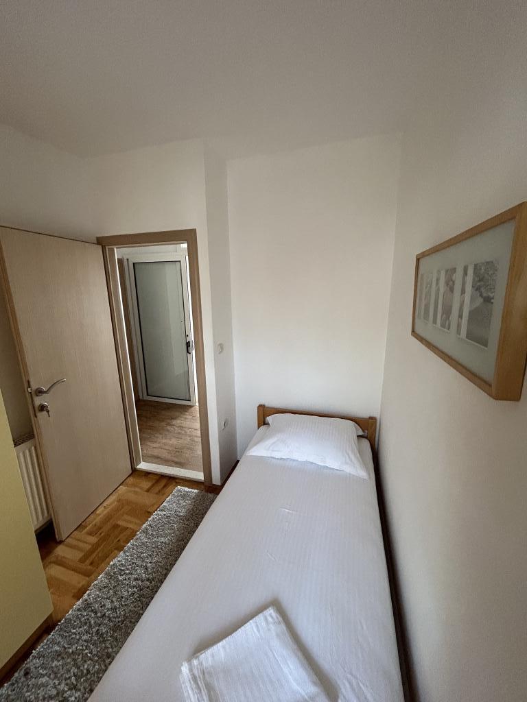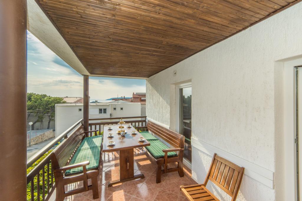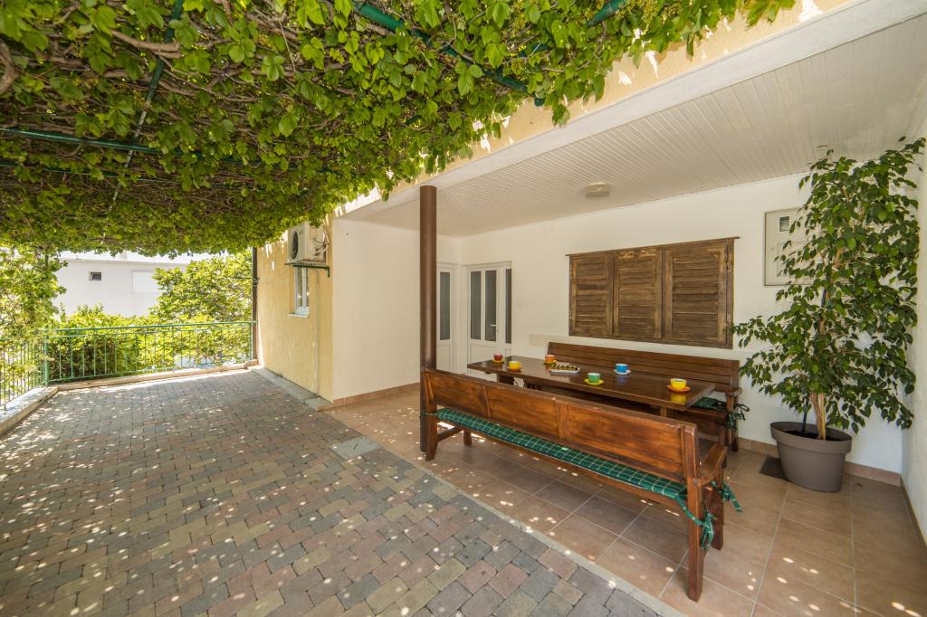 Lena Apartamentul este situat in Makarska, 300m de la centru. Se compune din 4 dormitoare, doua bai, bucatarie complet utilata, living si sufragerie. Există două terase, aer conditionat, televizor, maşină de spălat şi de parcare pentru 2 autoturisme (incluse in pret). Există, de asemenea, un grătar afara. Lenjerii de pat şi prosoapele sunt incluse.