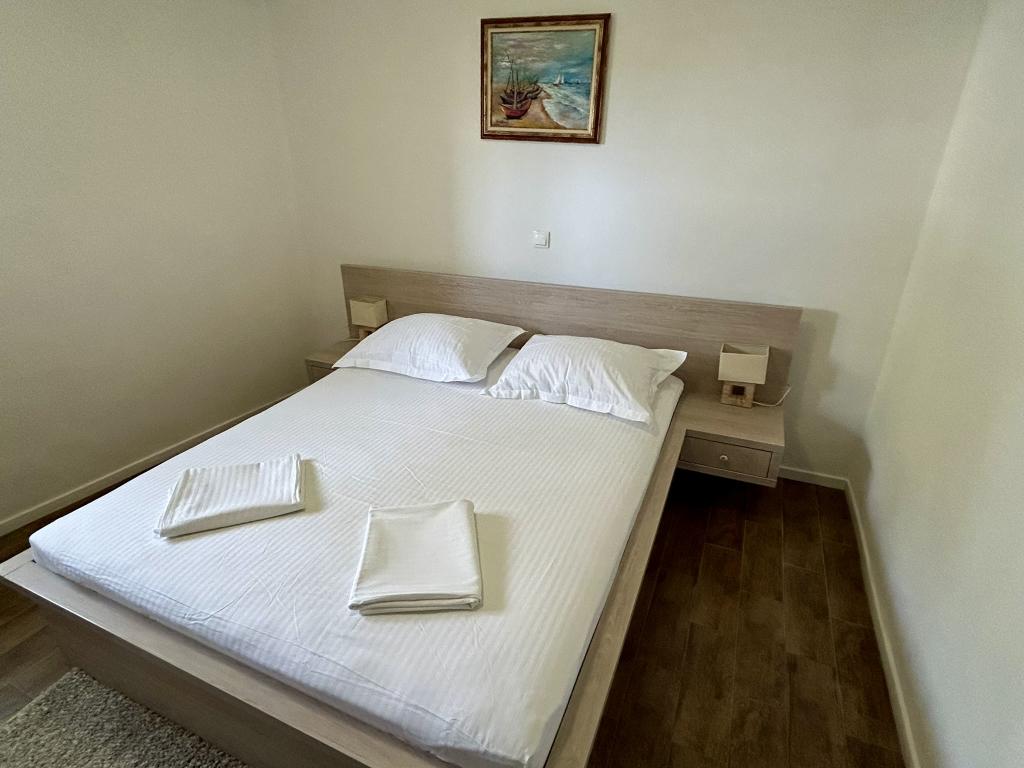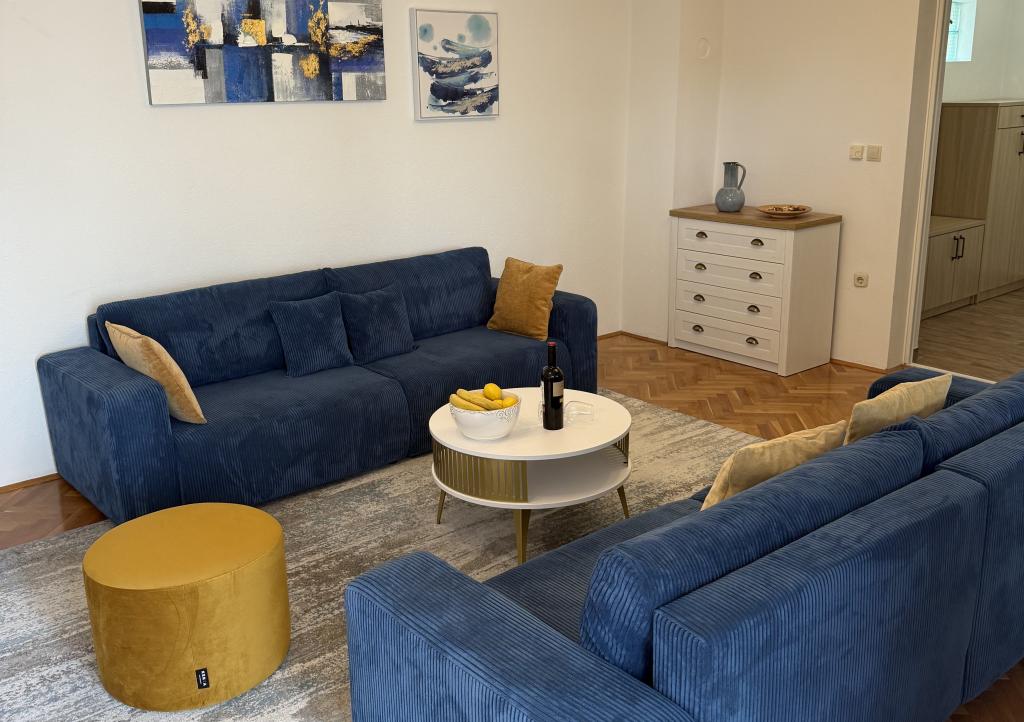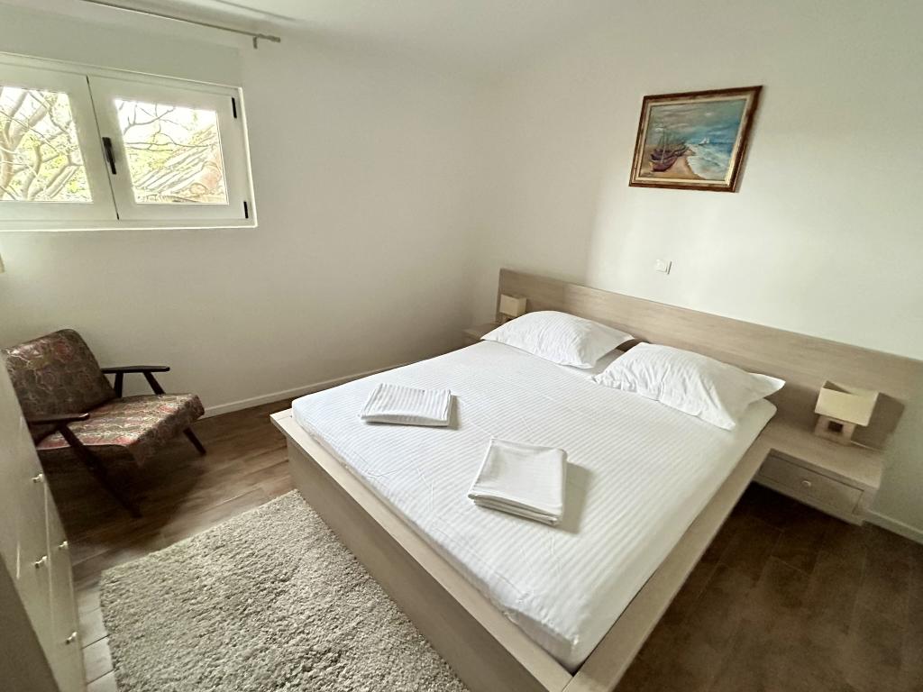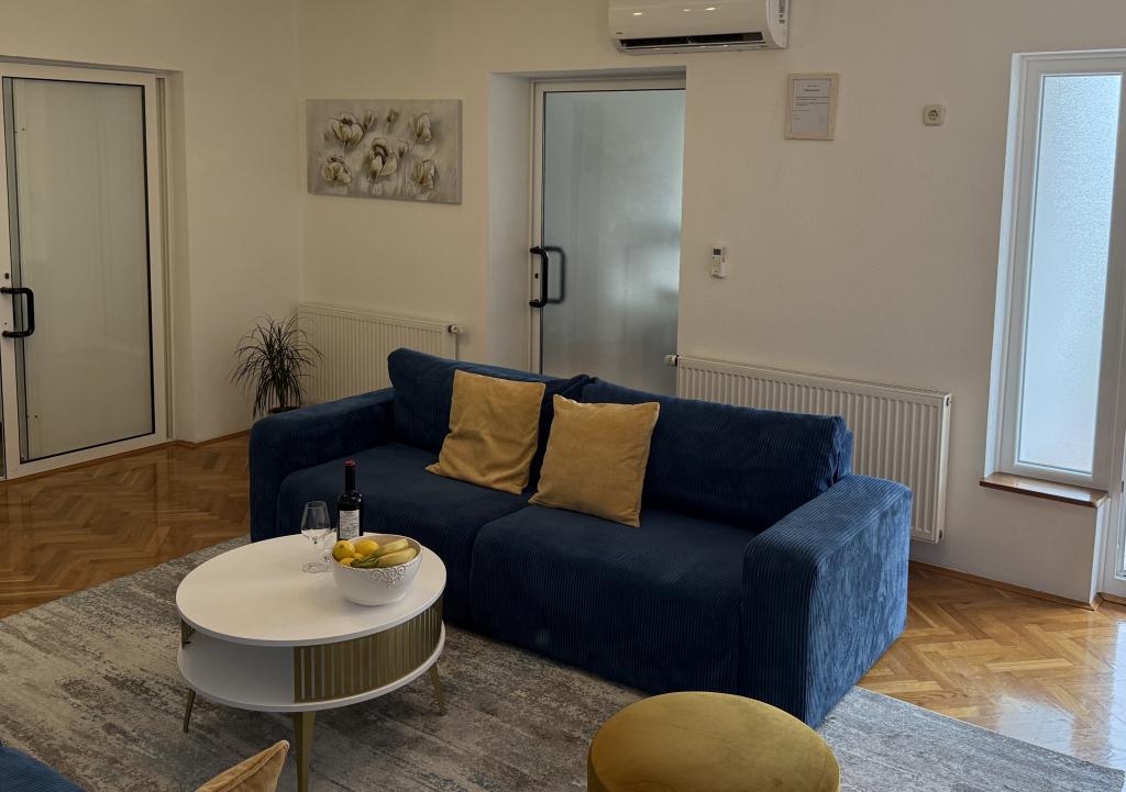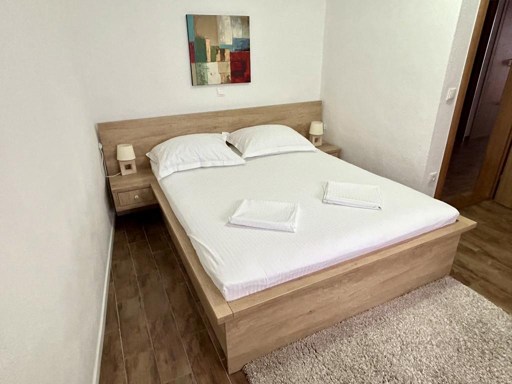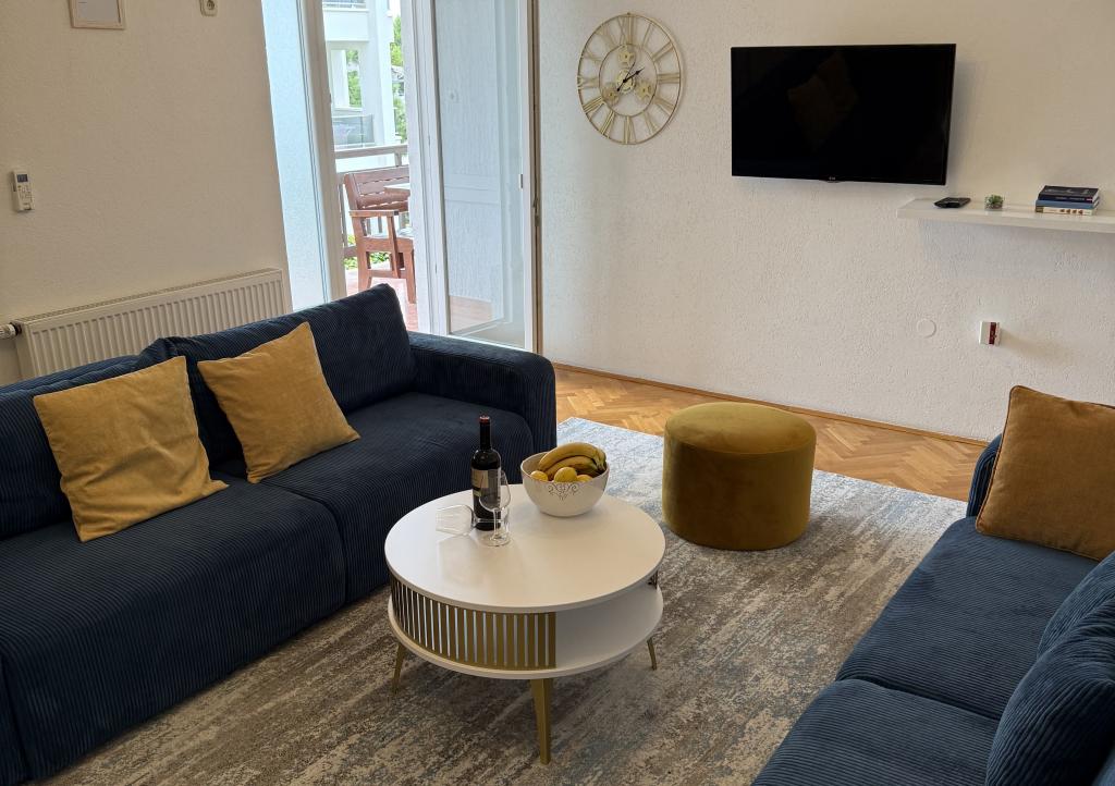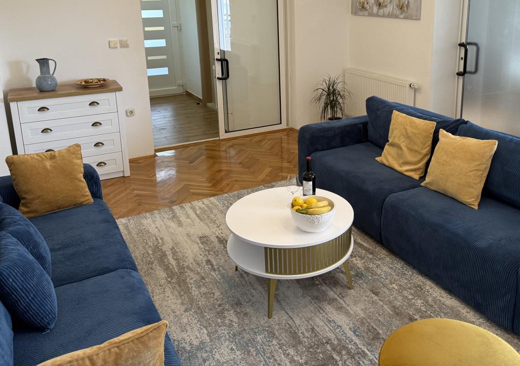 Lena Apartamentul este situat in Makarska, 300m de la centru. Se compune din 4 dormitoare, doua bai, bucatarie complet utilata, living si sufragerie. Există două terase, aer conditionat, televizor, maşină de spălat şi de parcare pentru 2 autoturisme (incluse in pret). Există, de asemenea, un grătar afara. Lenjerii de pat şi prosoapele sunt incluse.