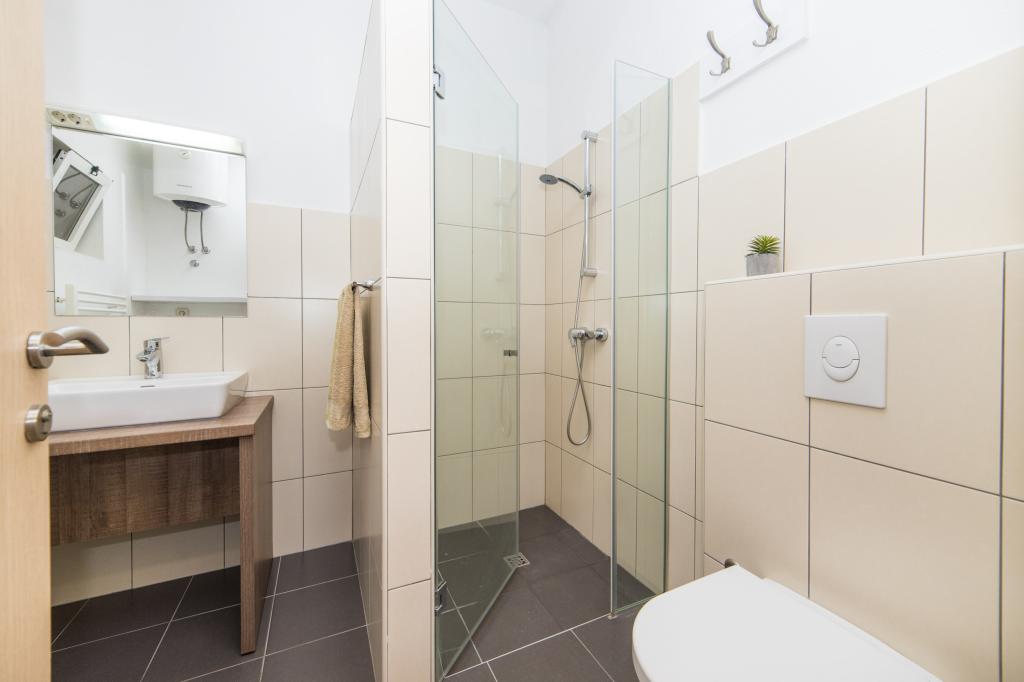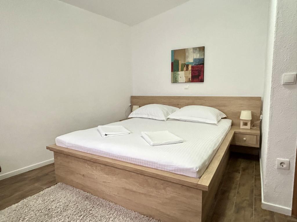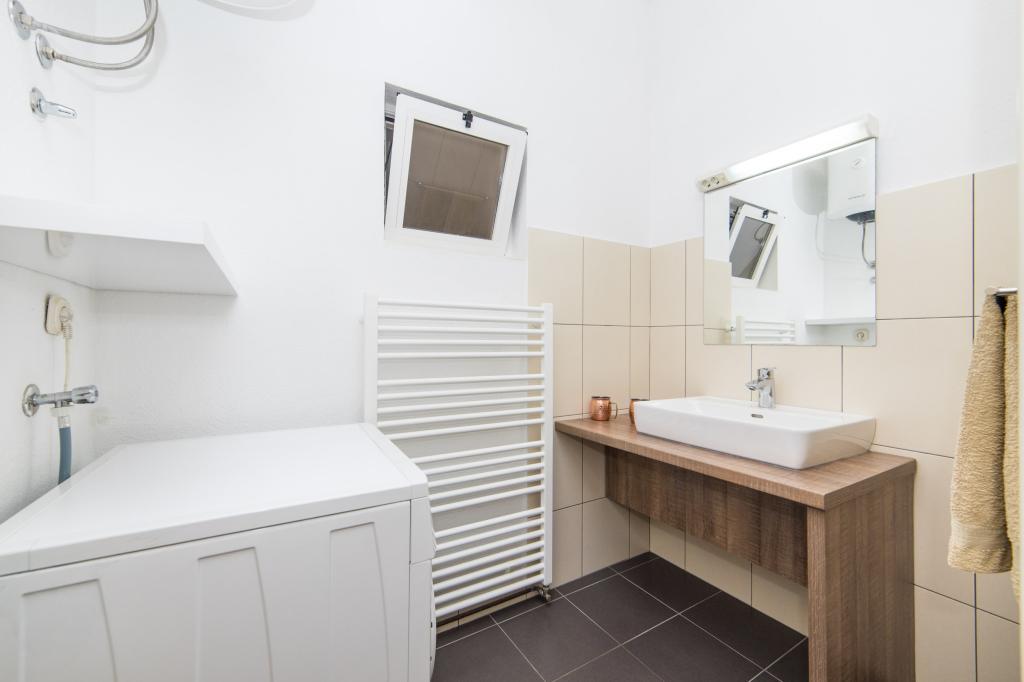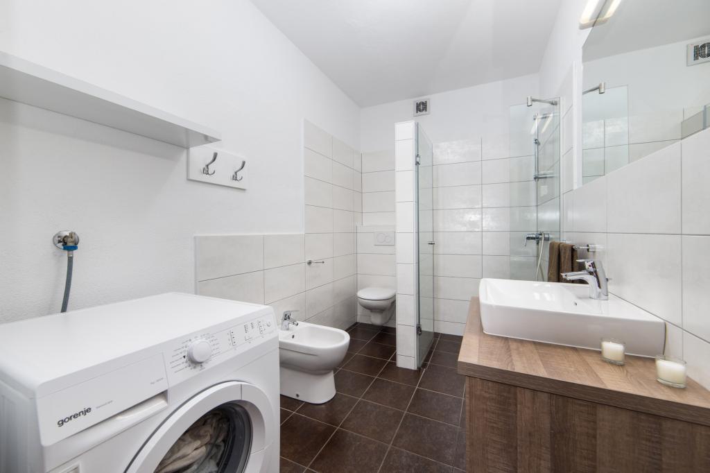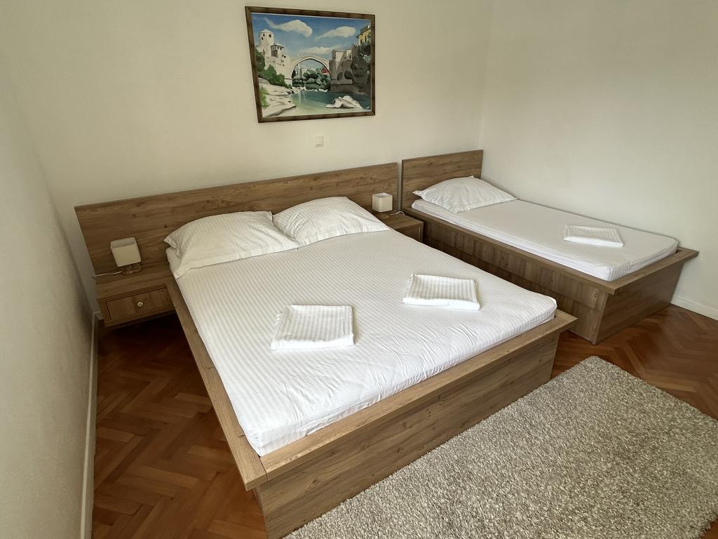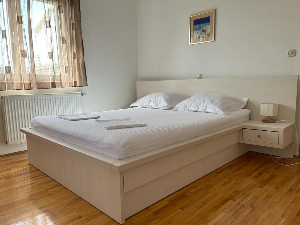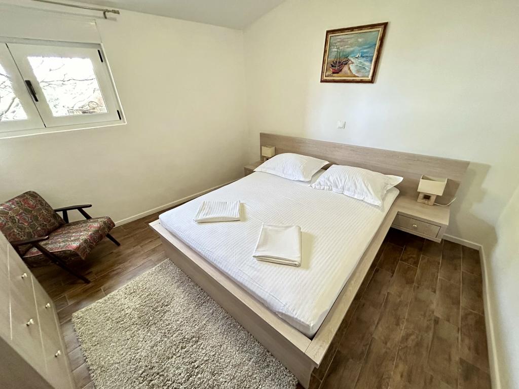 Lena Apartamentul este situat in Makarska, 300m de la centru. Se compune din 4 dormitoare, doua bai, bucatarie complet utilata, living si sufragerie. Există două terase, aer conditionat, televizor, maşină de spălat şi de parcare pentru 2 autoturisme (incluse in pret). Există, de asemenea, un grătar afara. Lenjerii de pat şi prosoapele sunt incluse.