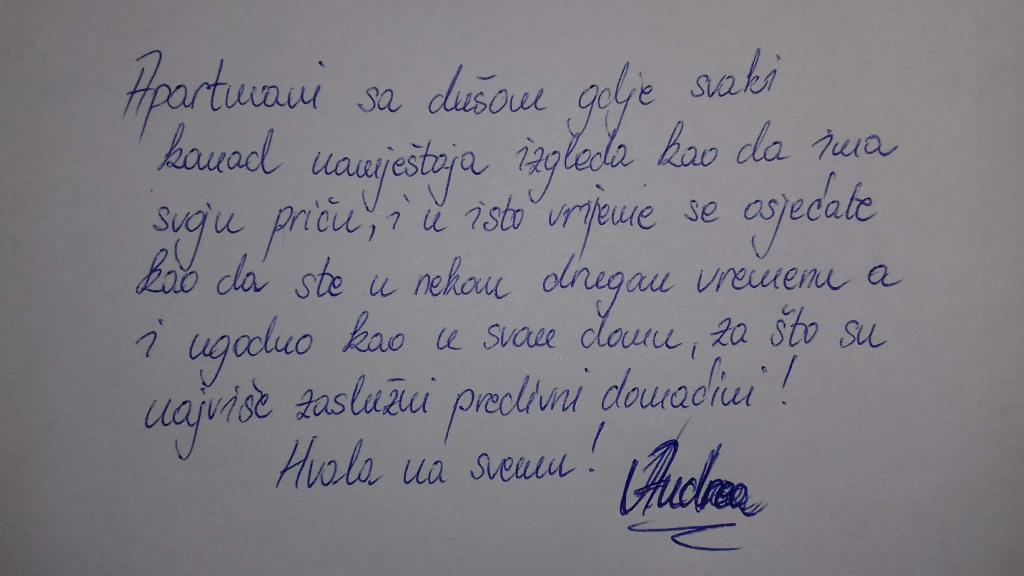 Apartamente elegante și mobilate confortabil, aproape de orașul vechi, centrul orașului, port, centru sportiv și plajă naturală. Acesta este situat la 5 minute de mers pe jos de centrul orașului și la 5 minute de cea mai apropiată plajă din parcul forestier Osejava. Tradiția familiei de a închiria apartamente din 1968. Apartamentele sunt confortabile și spațioase, moderne și dotate elegant. Acestea oferă vedere la mare, la insule și la Muntele Biokovo. Fiecare apartament are o terasă mare de 20 m2, cu masă și grătar electric. Locurile de parcare pentru oaspeți sunt asigurate în curtea casei. Ideal și potrivit pentru familiile cu copii mici, deoarece suntem situați într-o zonă liniștită a orașului, înconjurată de verdeață. În apropiere se află un medic, o farmacie, o piață și o piață.