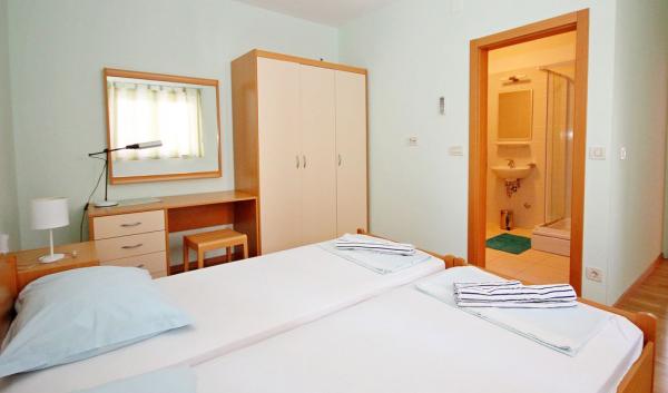 Apartamentele Mikulić sunt situate în 2 case de familie, înconjurate de o grădină mare și măslini bătrâni. Acestea se află la 100 m de mare și plaje și la 800 m de centrul orașului. În imediata vecinătate există un supermarket, cafenele, restaurante și o școală de scufundări. Avem parcare securizată pentru toți oaspeții noștri. La primul etaj sunt 2 apartamente Bava A4+2 care pot fi conectate.