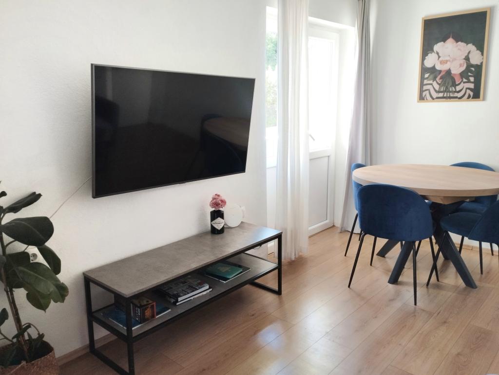 Apartament pentru 4 persoane - curățenia apartamentului este slabă (când am ajuns podeaua nu era măturată și ștersă corespunzător, a trebuit să o măturăm singuri la sosire), Scurgerile din baie sunt înfundate (apa se scurge foarte prost în duș și chiuvetă sau pur și simplu stă acolo), Praful nu a fost șters de pe masa din bucătărie și de pe suportul televizorului, sunt pânze de păianjen pe lumini și lipsește unul dintre cele trei becuri, dar, din moment ce nu există fereastră, nu este suficient. aprinde - nu este apă caldă în bucătărie - mirosul din dormitor este urât - când te întinzi pe pat miroase a vechi și mucegai - patul din dormitor este foarte inconfortabil și prea moale, deoarece are doar o saltea dublă suplimentară în loc de o saltea de yoga - există o fereastră veche în dormitor, prin care suflă puțin aerul și se aude tot zgomotul de pe stradă - există un „suport” pentru rufe afară, dar nu sunt suficiente cârlige - a trebuit să le cumpărăm singuri ca să putem agăța prosoape - absolut insuficienți ustensile de gătit - nici măcar nu poți coace clătite pentru un copil Lucruri pozitive: - locul de parcare este în fața apartamentului și este acoperit - apartament spațios - apropierea de plajă, brutărie - hârtie igienică, prosoape și lenjerie de pat sunt disponibile - proprietarii apartamentului sunt foarte prietenoși *apartamentul vecin pentru 6 persoane este complet diferit... mai bine echipat