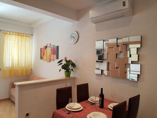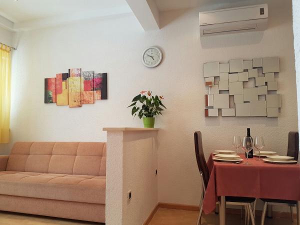 Citește mai mult Unități de cazareModalitate de plata: plata in avans de 25 pana la 30% in cont, restul in numerar la sosirea in apartament. Pretul unui sejur de pana la 4 nopti este majorat cu 30%. Dacă oaspetele plătește un avans și dorește să anuleze rezervarea cu 120 de zile înainte de sosire, returnăm 50% din avansul primit, după care avansul nu este returnat. Sosire la apartament după ora 14.00. Plecare din apartament până la ora 10. Dacă doriți să intrați mai devreme în apartament sau să stați mai mult decât ora programată de sosire sau de plecare, și există posibilitatea, este necesară o plată suplimentară (20 euro pe oră). Există o posibilitate de acord pentru toate cele de mai sus.