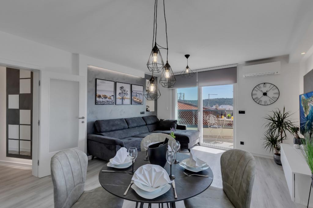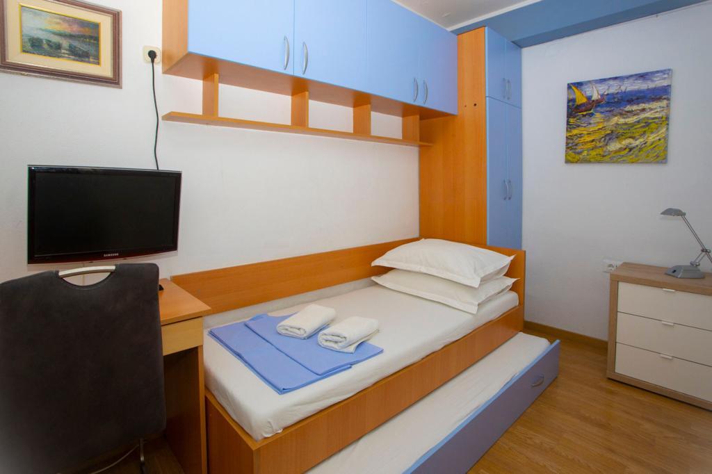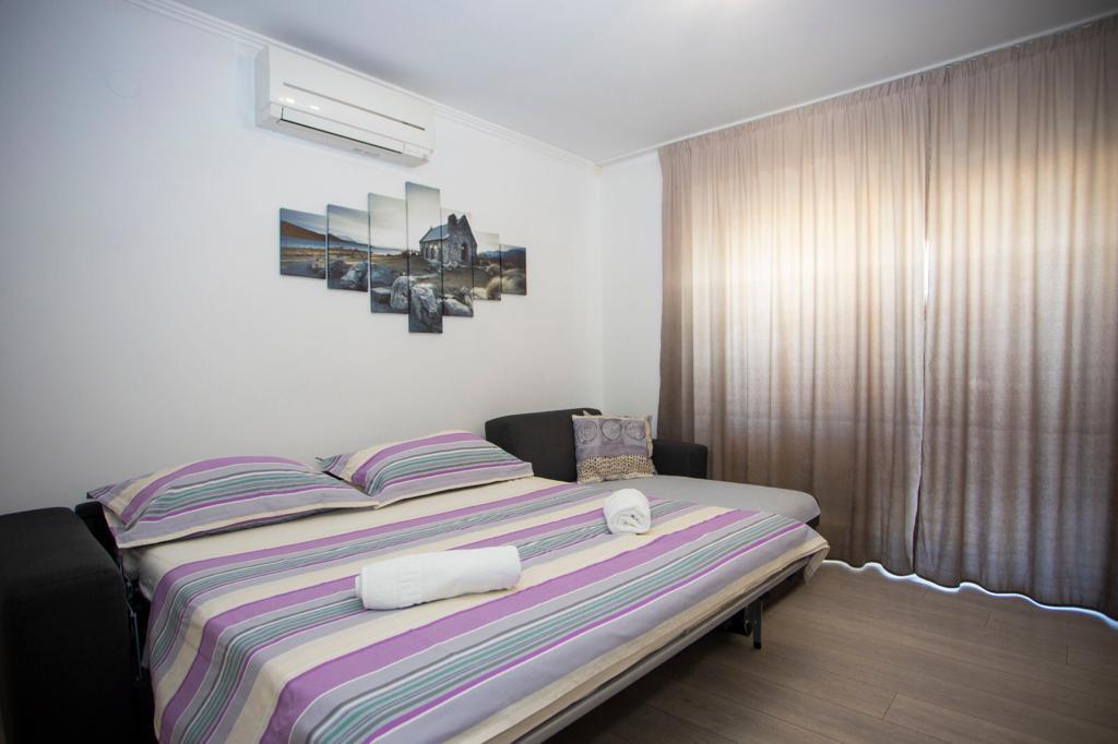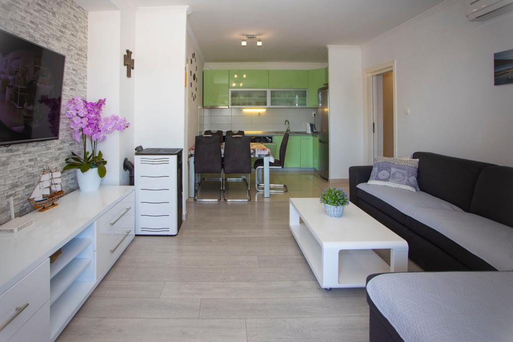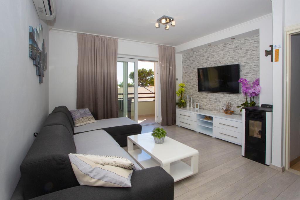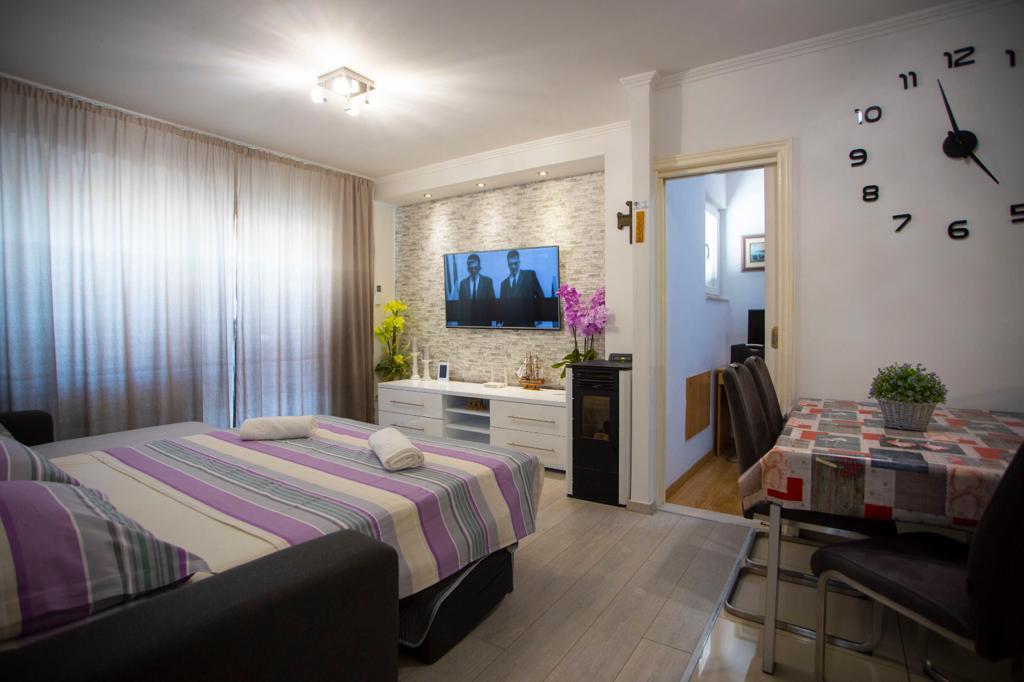 Complet, apartament de lux de 80m2 la etajul 2 al unui bloc detașat cu locuri de parcare, apartament este compus din 3 dormitoare dormitoare 2 bai bucatarie, living cu acces la balkon.Apartman trai este echipat cu mașină de spălat vase, mașină de spălat, fližderom mare cu congelator, cuptor, cuptor cu microunde cuptor, masina de cafea, 2 TV LCD, DVD, satelit cu programul 3000, un calculator cu acces gratuit la internet, aer conditionat ,, apartament poate găzdui un maxim de 8 osoba.Apartman situat în partea de est a orașului 400 m de plaja Osejava și de centrul orașului, la 200 m de la Centrul Sportiv și supermarket Lidl, 4oo în zona liniștită a .5 minute de mers pe jos de centrul orasului si 10 minute de mers pe jos de plaja