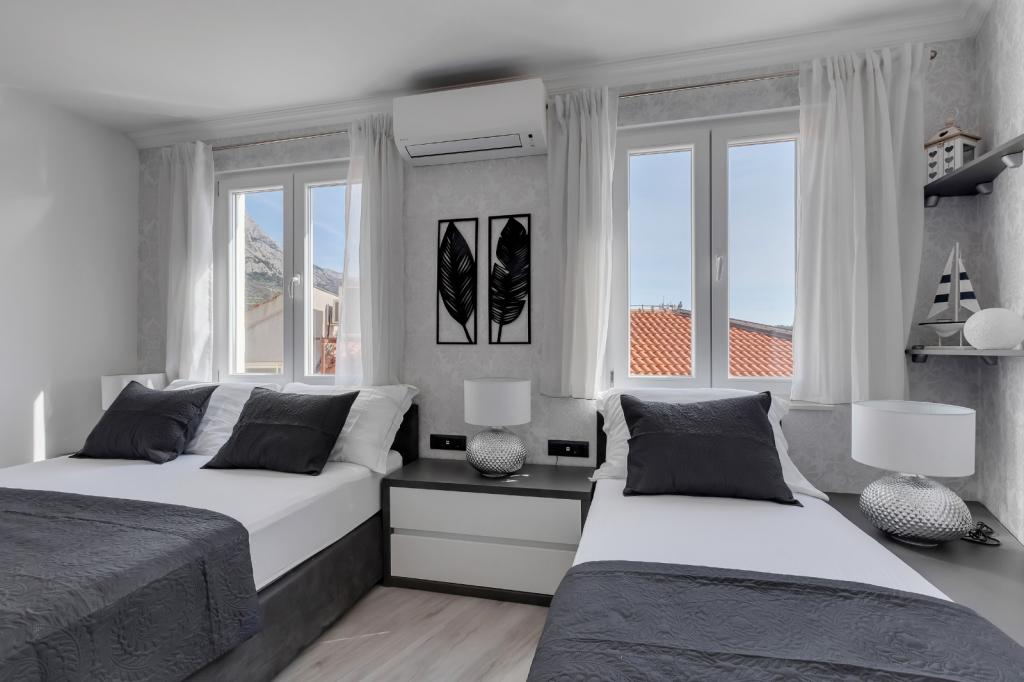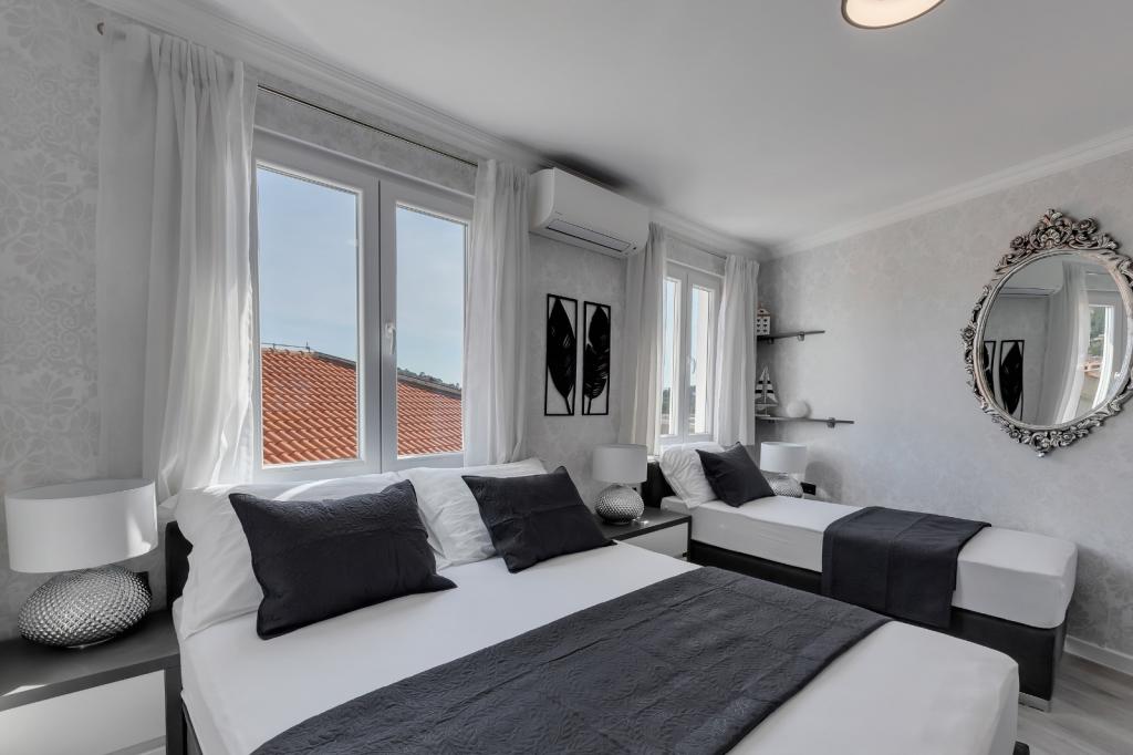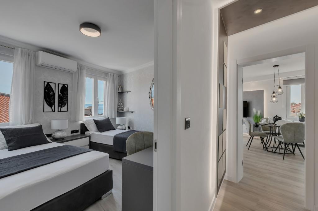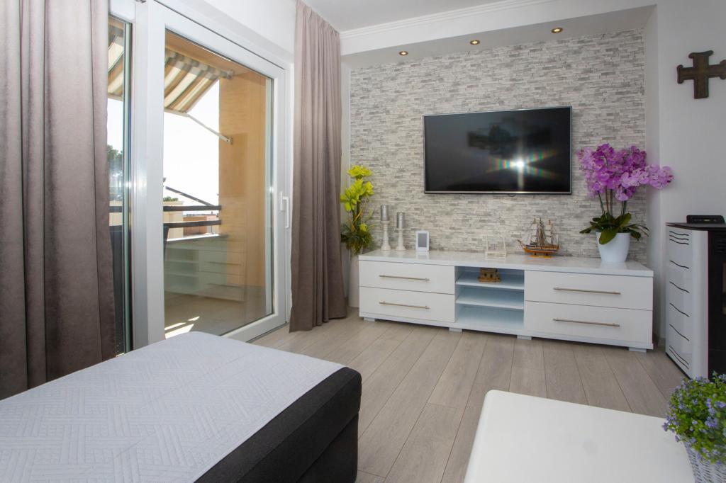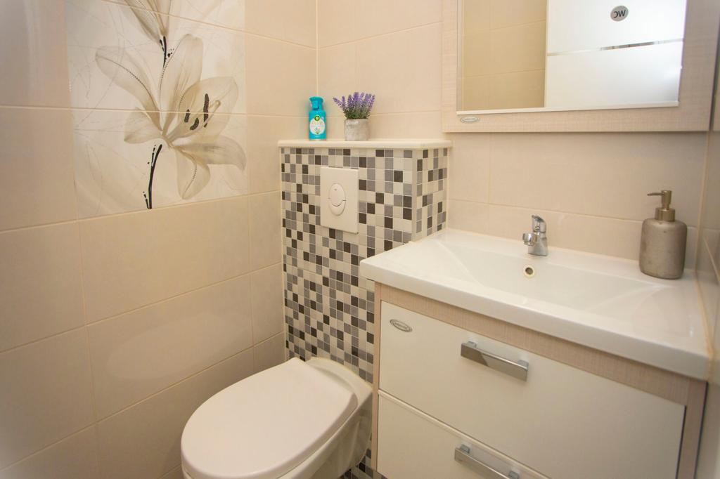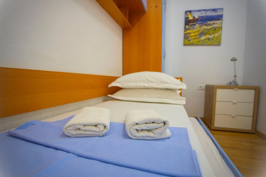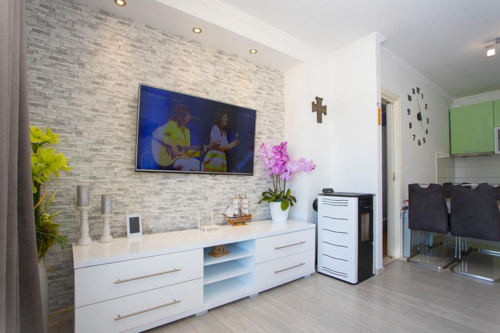 Complet, apartament de lux de 80m2 la etajul 2 al unui bloc detașat cu locuri de parcare, apartament este compus din 3 dormitoare dormitoare 2 bai bucatarie, living cu acces la balkon.Apartman trai este echipat cu mașină de spălat vase, mașină de spălat, fližderom mare cu congelator, cuptor, cuptor cu microunde cuptor, masina de cafea, 2 TV LCD, DVD, satelit cu programul 3000, un calculator cu acces gratuit la internet, aer conditionat ,, apartament poate găzdui un maxim de 8 osoba.Apartman situat în partea de est a orașului 400 m de plaja Osejava și de centrul orașului, la 200 m de la Centrul Sportiv și supermarket Lidl, 4oo în zona liniștită a .5 minute de mers pe jos de centrul orasului si 10 minute de mers pe jos de plaja