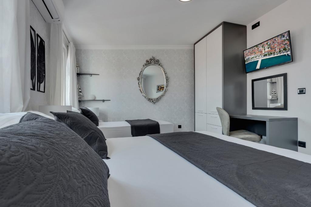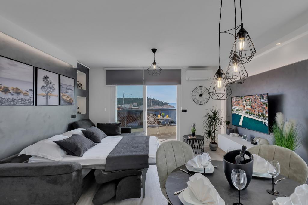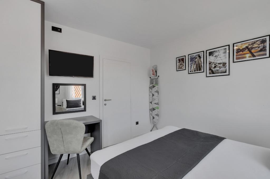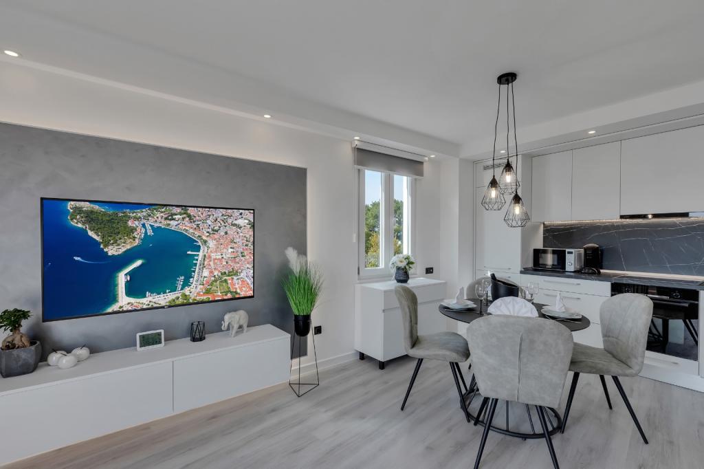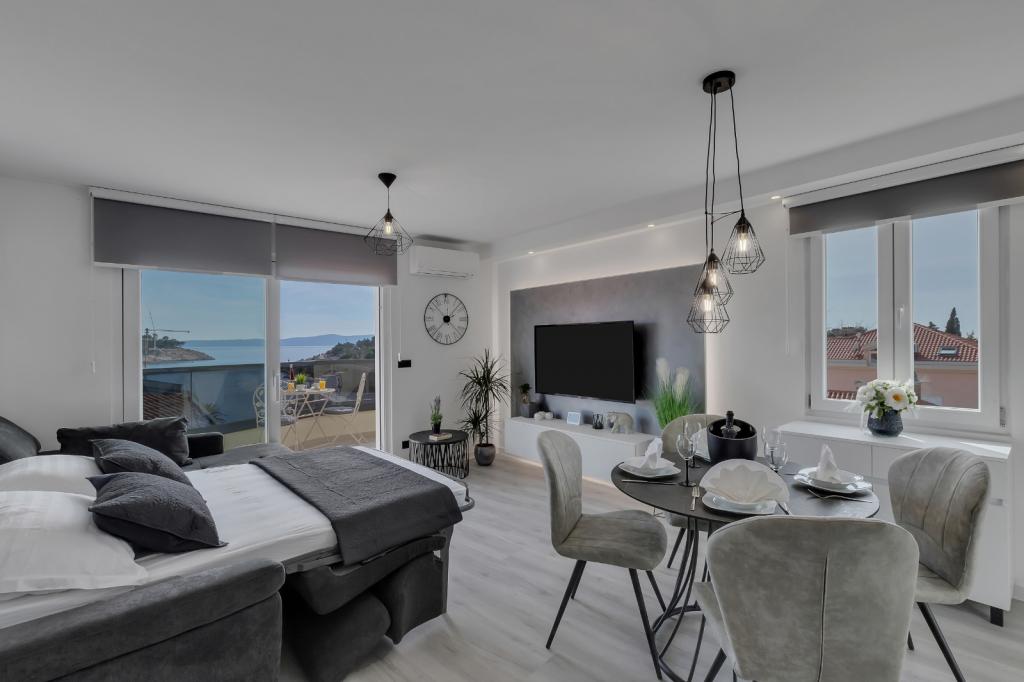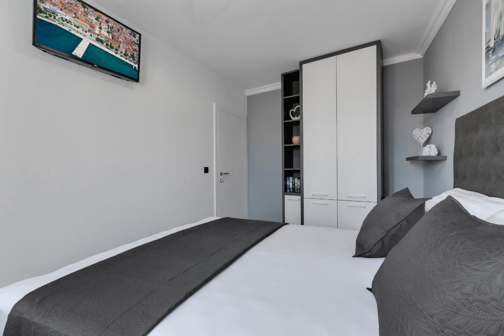 Complet, apartament de lux de 80m2 la etajul 2 al unui bloc detașat cu locuri de parcare, apartament este compus din 3 dormitoare dormitoare 2 bai bucatarie, living cu acces la balkon.Apartman trai este echipat cu mașină de spălat vase, mașină de spălat, fližderom mare cu congelator, cuptor, cuptor cu microunde cuptor, masina de cafea, 2 TV LCD, DVD, satelit cu programul 3000, un calculator cu acces gratuit la internet, aer conditionat ,, apartament poate găzdui un maxim de 8 osoba.Apartman situat în partea de est a orașului 400 m de plaja Osejava și de centrul orașului, la 200 m de la Centrul Sportiv și supermarket Lidl, 4oo în zona liniștită a .5 minute de mers pe jos de centrul orasului si 10 minute de mers pe jos de plaja
