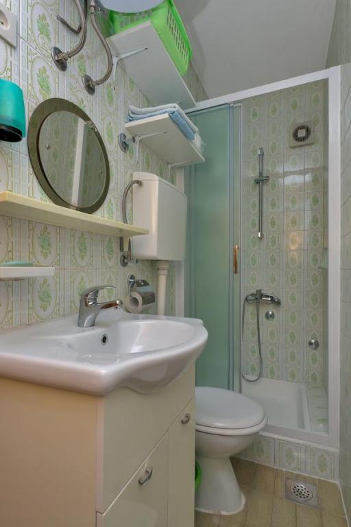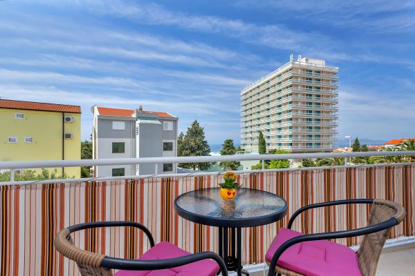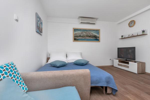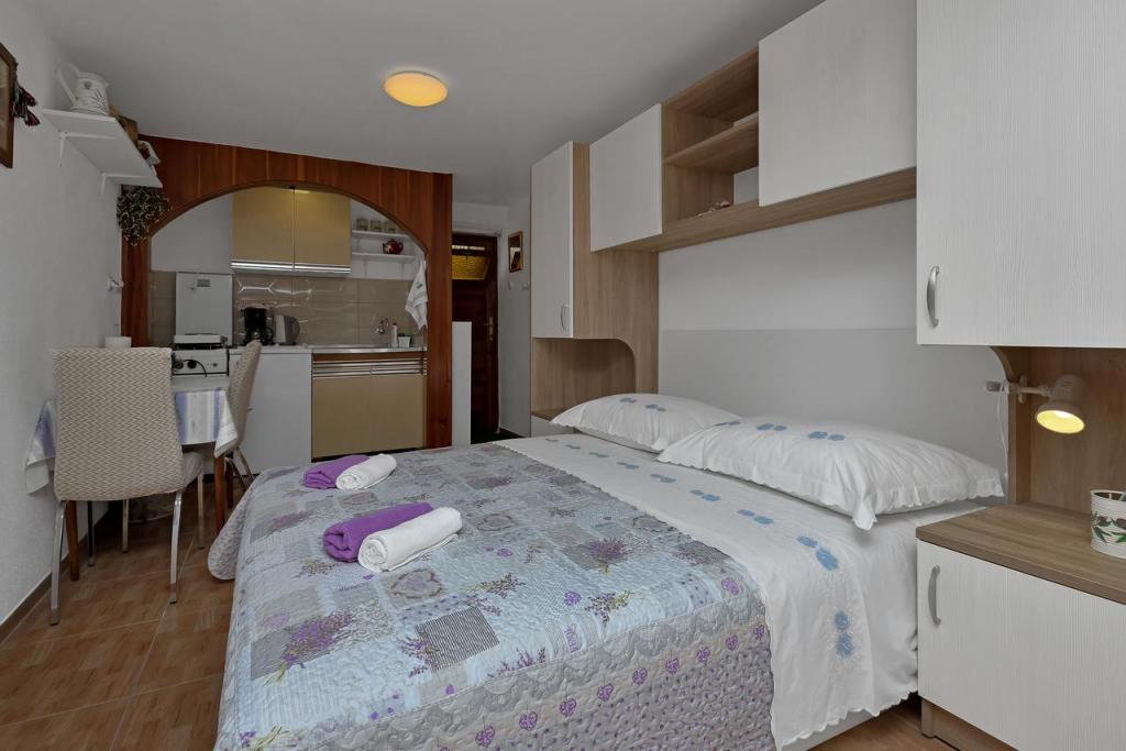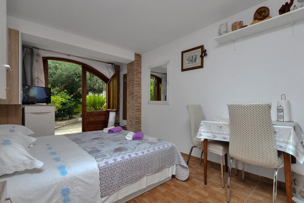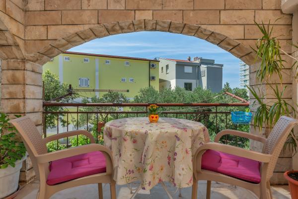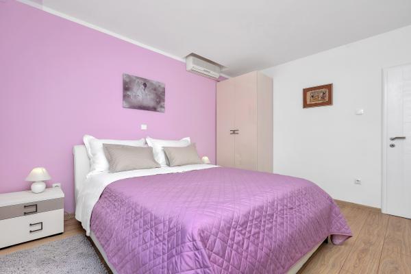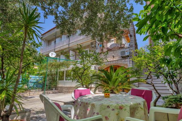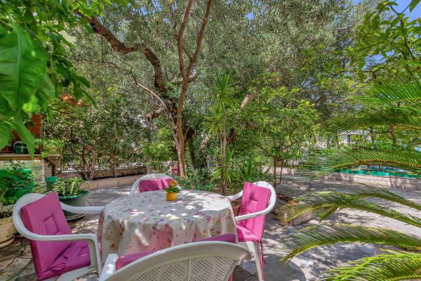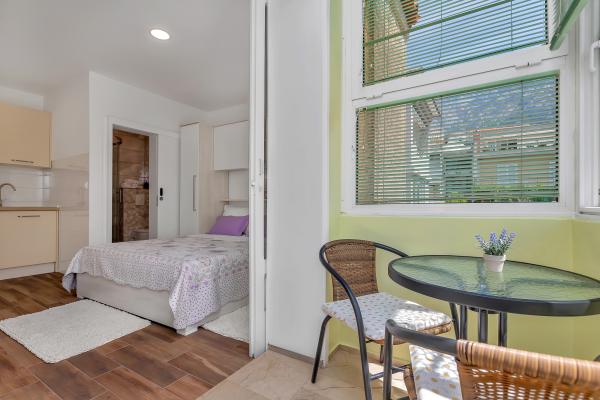 La doar un minut de mers pe jos de plajă! Primul apartament este „apartamentul 4+2” (ID: 58865), pentru 4 persoane cu posibilitatea unui pat suplimentar pentru încă două persoane. Suprafața totală este de 85 m2, cu două dormitoare, un living spațios cu bucătărie, două băi și o toaletă suplimentară. Apartamentul are balcon propriu cu vedere la mare. Al doilea este la același etaj Studioul „Up!” (ID: 58866) pentru două persoane, cu o terasă privată pentru două persoane. Al treilea „apartament 3+2” (ID: 63762) de 65 m2 oferă cazare la parter pentru până la 5 persoane, iar al patrulea Studio „Olive Tree” (ID: 65589) pentru două persoane, tot la parterul casei.