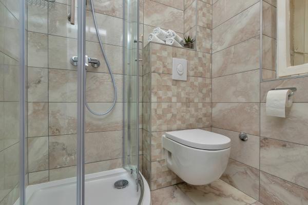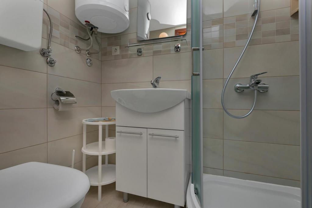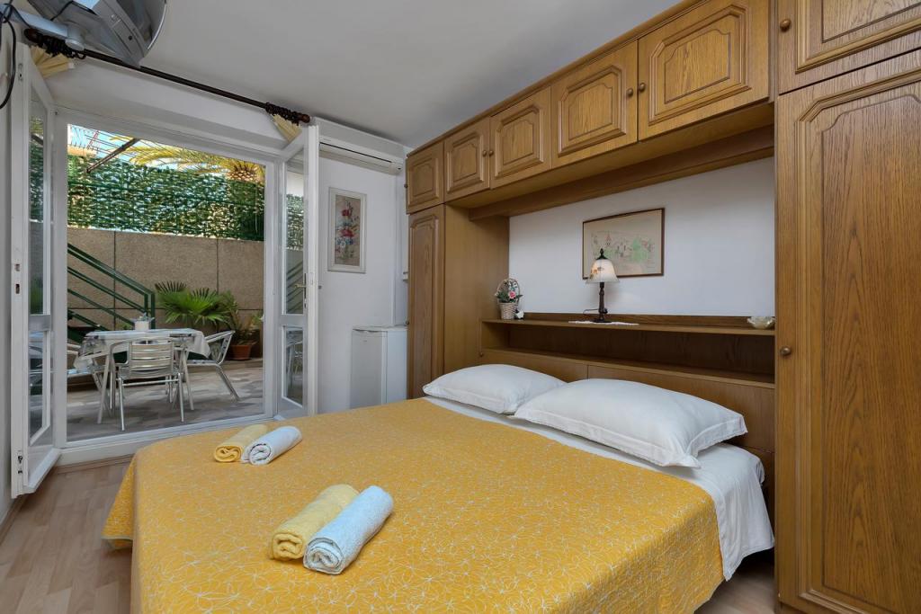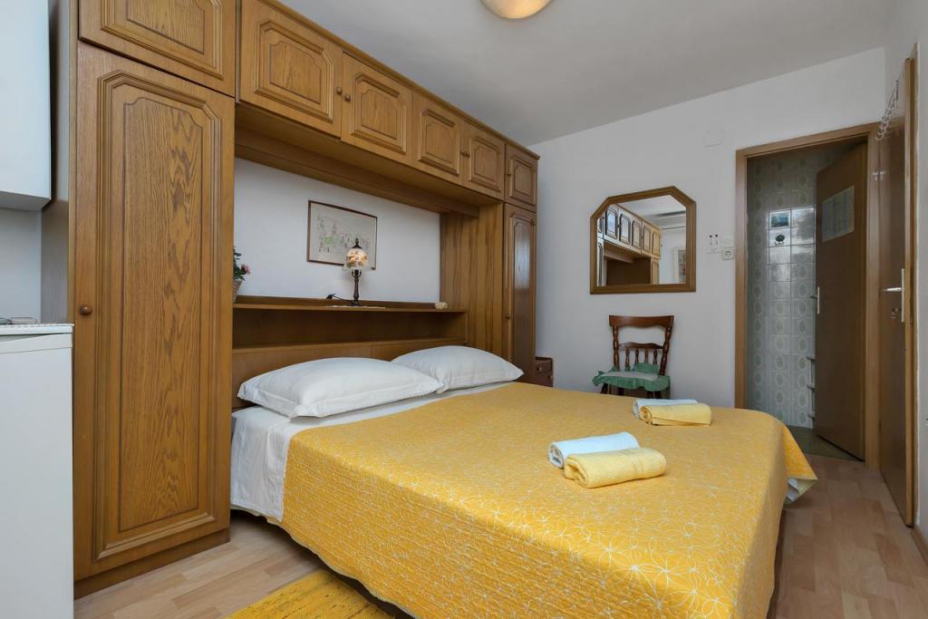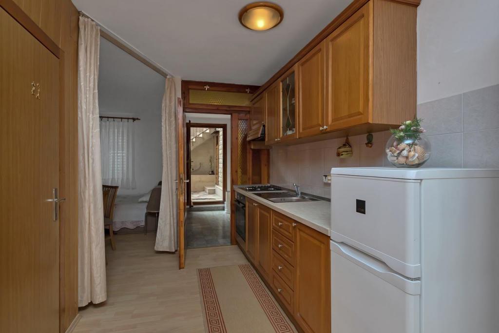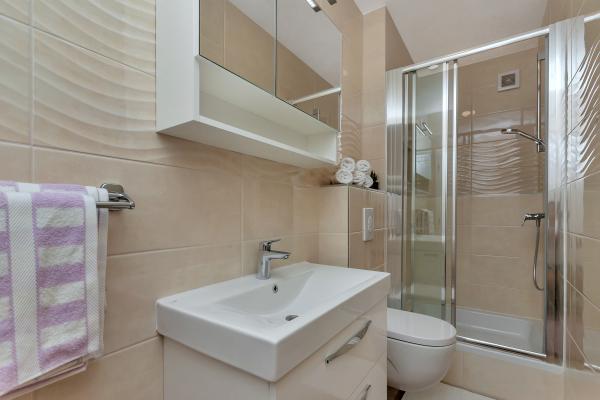 La doar un minut de mers pe jos de plajă! Primul apartament este „apartamentul 4+2” (ID: 58865), pentru 4 persoane cu posibilitatea unui pat suplimentar pentru încă două persoane. Suprafața totală este de 85 m2, cu două dormitoare, un living spațios cu bucătărie, două băi și o toaletă suplimentară. Apartamentul are balcon propriu cu vedere la mare. Al doilea este la același etaj Studioul „Up!” (ID: 58866) pentru două persoane, cu o terasă privată pentru două persoane. Al treilea „apartament 3+2” (ID: 63762) de 65 m2 oferă cazare la parter pentru până la 5 persoane, iar al patrulea Studio „Olive Tree” (ID: 65589) pentru două persoane, tot la parterul casei.