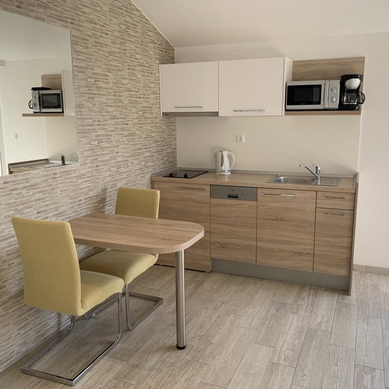 Vă invităm să vă petreceți vacanța într-unul dintre apartamentele din casa noastră familială din Makarska, situată la doar câțiva pași de mare și de o frumoasă plajă de nisip. Apartamente Ankora Makarska Oferim cazare in apartamente dotate cu aer conditionat, televiziune prin satelit, radio si seif, si cu o vedere unica la mare, plaja Makarska si peninsula Sv. Petru. Există parcare gratuită pentru oaspeții noștri în imediata apropiere a casei. La parterul casei se află o cafenea de familie - restaurant „Ankora” unde vă putem oferi specialitățile noastre din pește și carne, deserturi răcoritoare și alte delicatese, iar fiecare zi va începe bine cu micul dejun. Vă dorim o ședere plăcută!