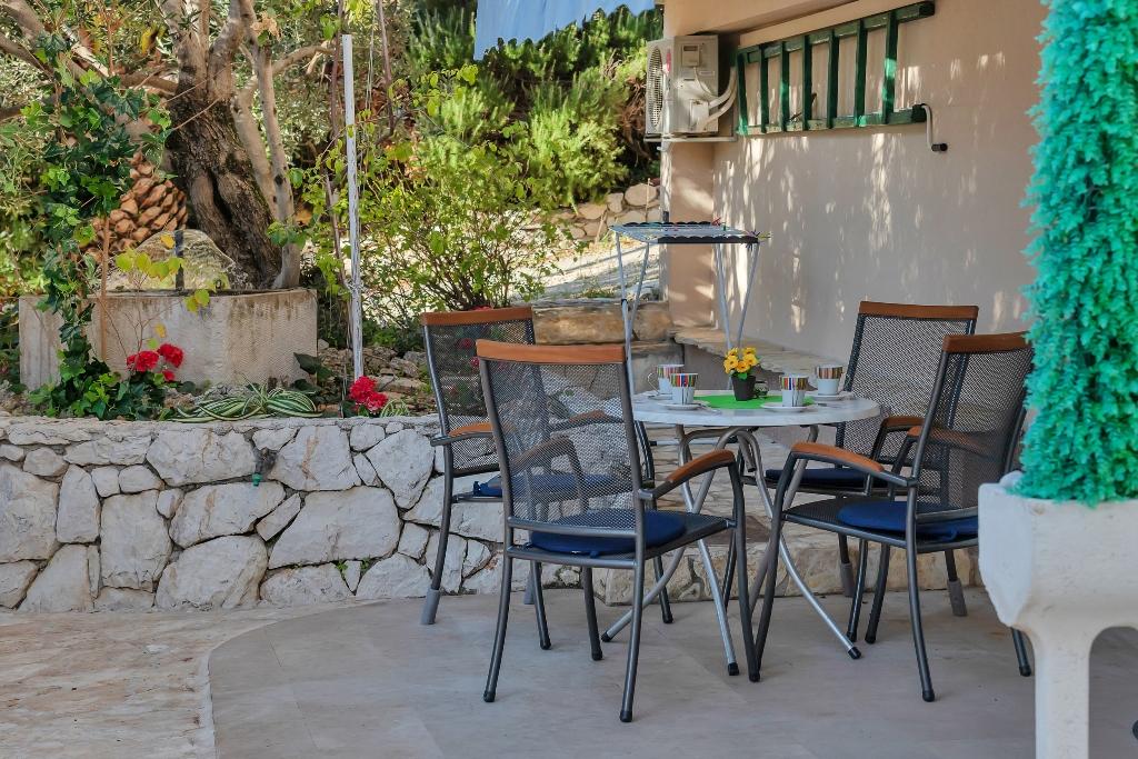 Villa Miranda este situată chiar la intrarea în Makarska de către Split, pe prima stradă până la drumul principal. Deși în oraș, Zagrebačka 94, este complet înconjurat de natură autohtonă - piatră, măslini și migdale înalte în jurul casei. Toate apartamentele și studiourile sunt dotate cu aer condiționat și oferă TV prin satelit, Wi-Fi, parcare mare și grătar. Nu este nevoie să negociem cu ceilalți oaspeți pentru gratar, deoarece sunt disponibile mai multe grătare. Vila este un turist, concentrat pe șederea dvs. liniștită și confortabilă. Se află la 10 minute de mers pe jos de plajele frumoase de nisip și la 15-20 minute de mers pe jos de centrul orașului Makarska. La câțiva pași este cafeneaua cu facilități de însoțire, închiriere de biciclete și închiriere de scutere. Doar 5 minute de mers pe jos este o farmacie, brutărie, supermarket, ATM. Foarte aproape este sanctuarul celebru Vepric, cunoscut sub numele de Lourdes croată, iar terenurile de tenis sunt la 400 de metri distanță, precum și discoteca de pe plajă. Puteți aduce animalul de companie împreună cu dvs., precum și cu bicicletele