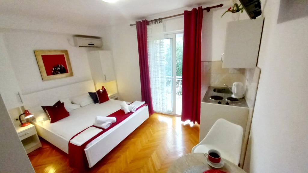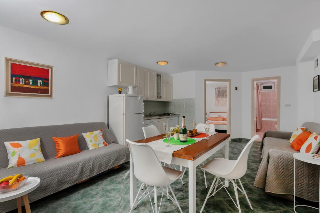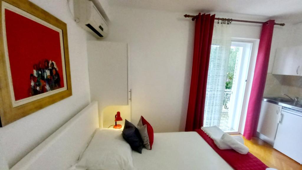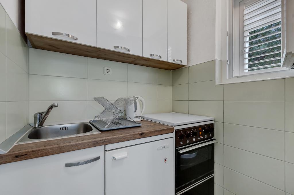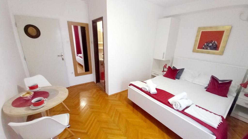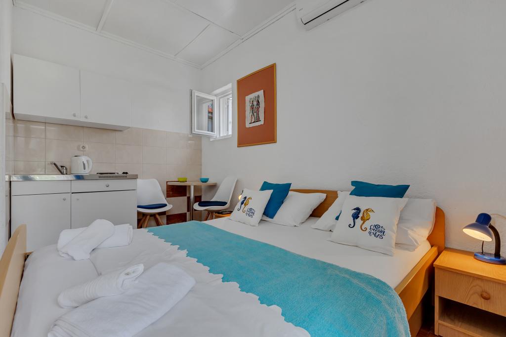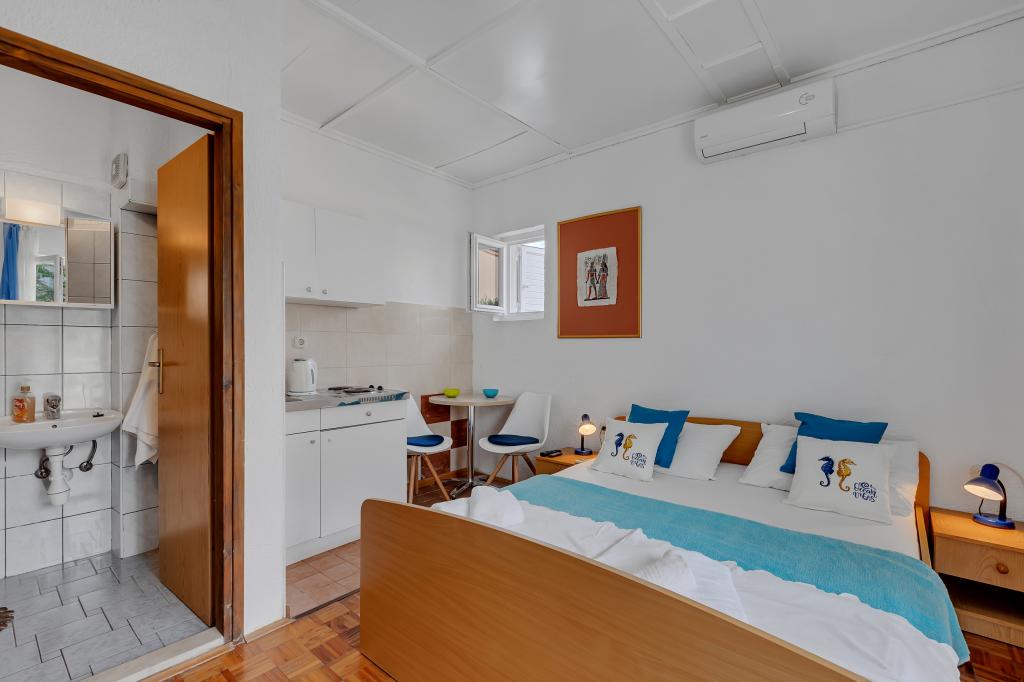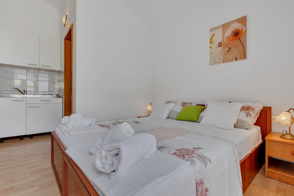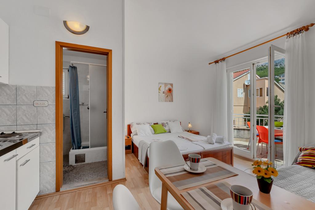 Apartament și locație excelentă în Makarska, pentru toți cei care doresc liniște și liniște care își doresc o vacanță pe mare. Dna Miranda este întotdeauna la dispoziția dvs. și este foarte profesionistă în ceea ce privește rezervarea, comunicarea și toate nevoile de care are nevoie un oaspete în timpul șederii sale în Makarska și în apartamentul ei frumos. Studiou curat și ordonat, așa cum se vede în fotografii, fără surprize neplăcute, camere cu aer condiționat, cu vedere la mare și miros de pin intoxicant. În apropiere se găsește tot ce ai nevoie în timpul șederii, brutăriei, pieței, spălătoriei, fructelor, biroului de schimb, benzinăriei, închirierii de biciclete sau a scuterului. O recomandare caldă tuturor celor care doresc să viziteze Makarska și Riviera.