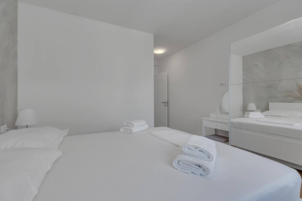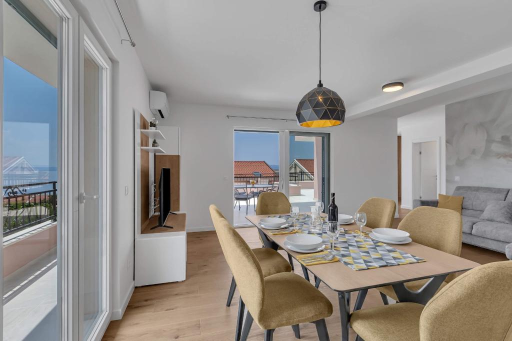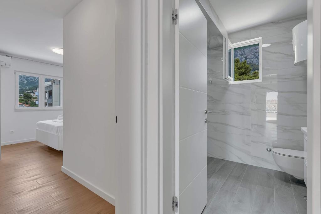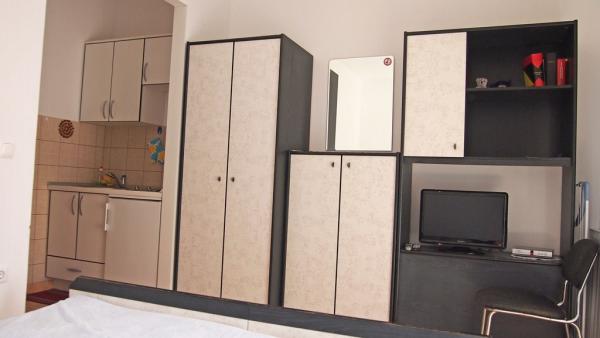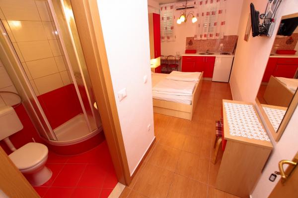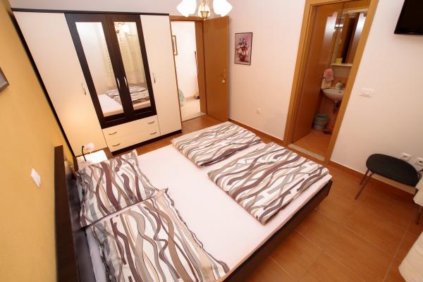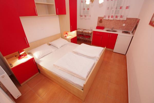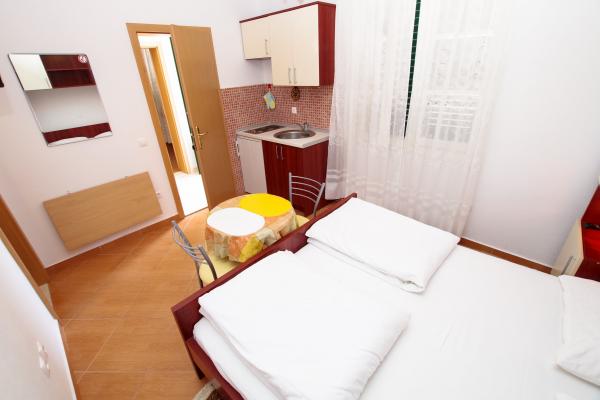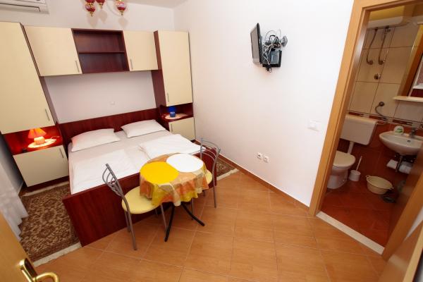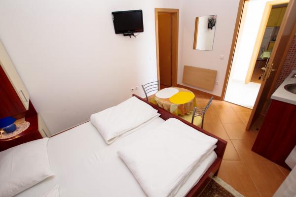 Facilitățile noastre de cazare sunt situate în interiorul casei în care locuim. Pe lângă parcarea păzită din interiorul casei, am pus la dispoziție tuturor oaspeților televizoare, aer condiționat și acces la internet Wi-Fi rapid. Suntem situați la câteva minute de mers pe jos de centru și de mare, iar la aproximativ 10 minute de mers pe jos de plajă. La parter se află trei apartamente studio pentru două persoane și unul pentru trei persoane, iar la primul etaj se află două apartamente studio pentru două persoane. La etajul al doilea se află un apartament nou construit pentru patru persoane, clasificat cu patru stele, cu o suprafață de peste 90 de metri pătrați și un balcon de peste 50 de metri pătrați. Apartamentul este format din două dormitoare, două băi, un living spațios cu bucătărie și două balcoane. Este complet nou mobilat, cu toate electrocasnicele necesare, cum ar fi mașină de spălat și mașină de spălat vase, cuptor cu microunde, frigider, trei aparate de aer condiționat…