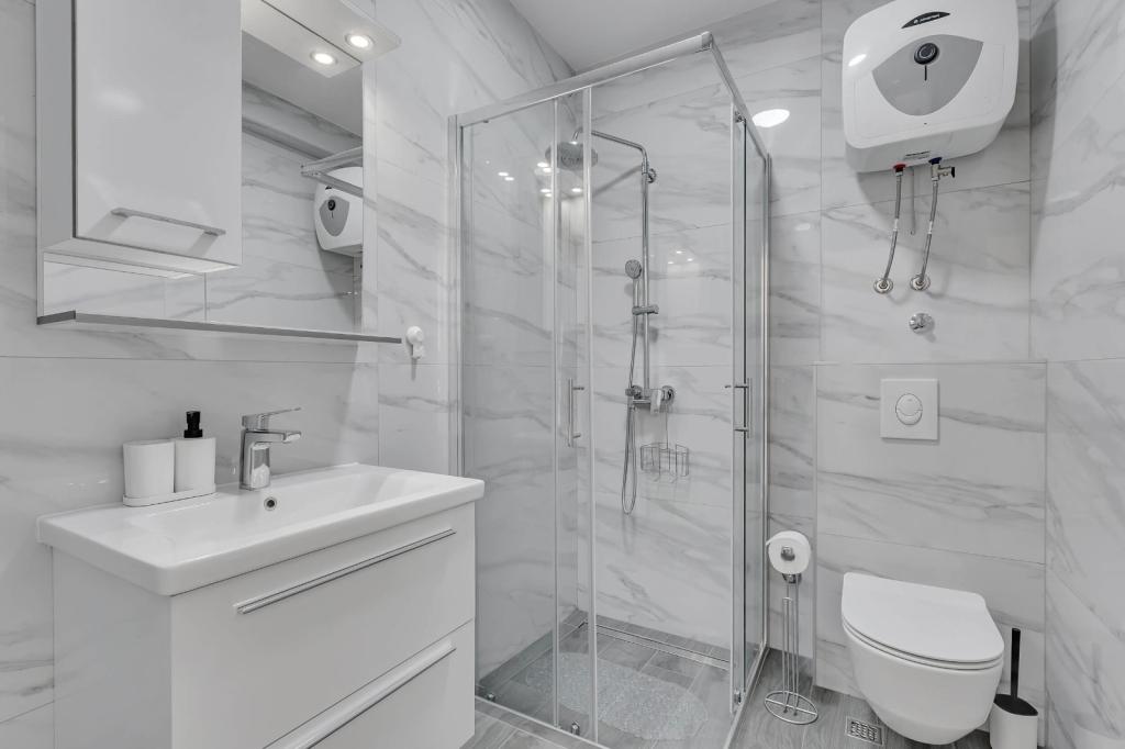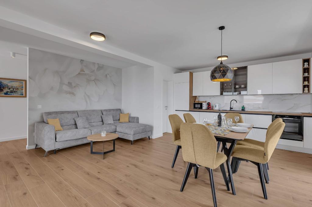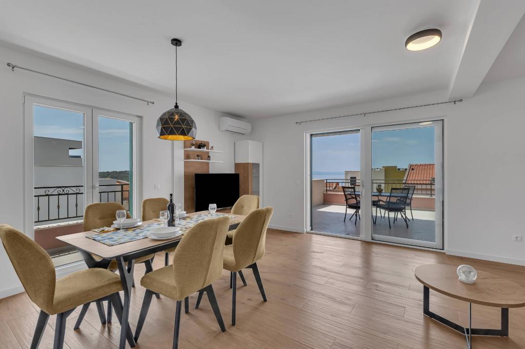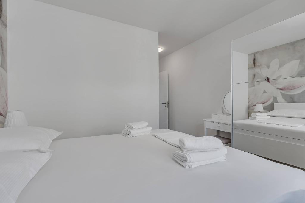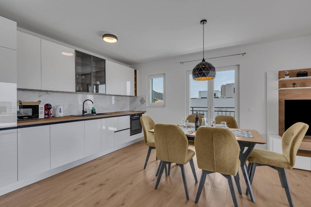 Facilitățile noastre de cazare sunt situate în interiorul casei în care locuim. Pe lângă parcarea păzită din interiorul casei, am pus la dispoziție tuturor oaspeților televizoare, aer condiționat și acces la internet Wi-Fi rapid. Suntem situați la câteva minute de mers pe jos de centru și de mare, iar la aproximativ 10 minute de mers pe jos de plajă. La parter se află trei apartamente studio pentru două persoane și unul pentru trei persoane, iar la primul etaj se află două apartamente studio pentru două persoane. La etajul al doilea se află un apartament nou construit pentru patru persoane, clasificat cu patru stele, cu o suprafață de peste 90 de metri pătrați și un balcon de peste 50 de metri pătrați. Apartamentul este format din două dormitoare, două băi, un living spațios cu bucătărie și două balcoane. Este complet nou mobilat, cu toate electrocasnicele necesare, cum ar fi mașină de spălat și mașină de spălat vase, cuptor cu microunde, frigider, trei aparate de aer condiționat…