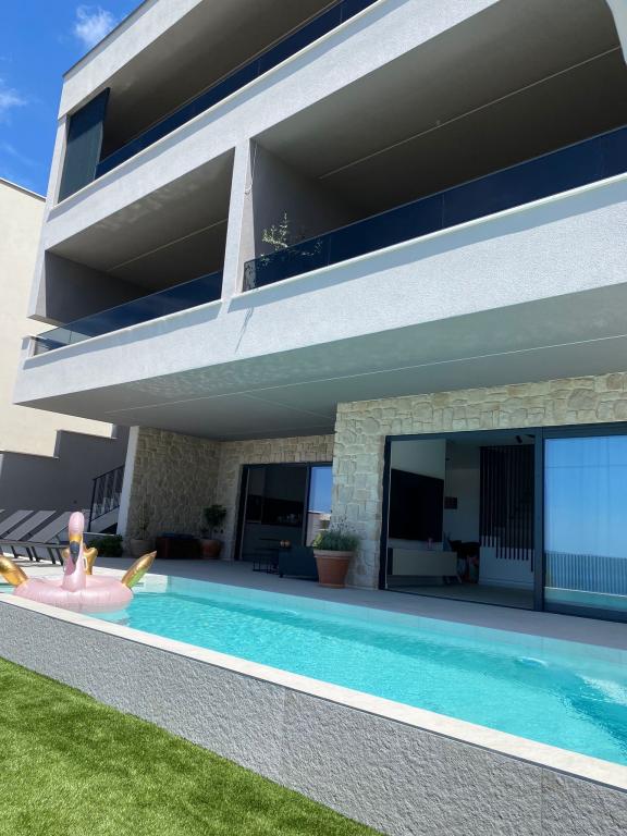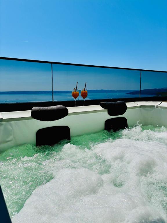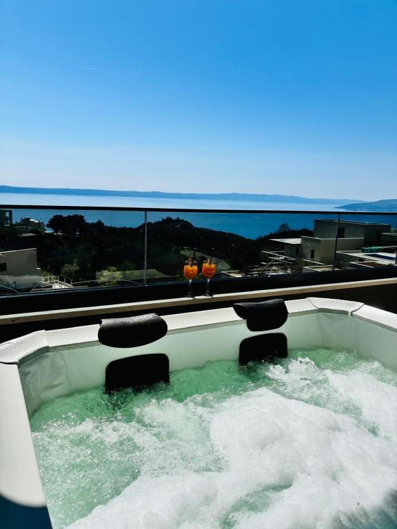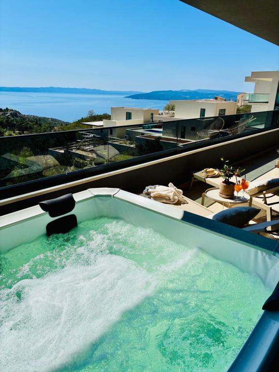 Villa 5 oferă cazare în Makarska, cu WiFi gratuit și vedere la mare, precum și o piscină în aer liber, o grădină și un lounge comun. Acest apartament oferă parcare privată gratuită și o bucătărie comună. Apartamentul cu aer condiționat este format din 4 dormitoare, un living, o bucătărie complet utilată cu frigider și aparat de cafea, precum și 3 băi cu duș și articole de toaletă gratuite. Prosoapele și lenjeria de pat sunt incluse în acest apartament. Villa 5 oferă cazare de 4 stele, cu cadă cu hidromasaj și terasă.
