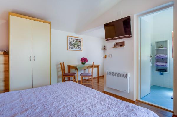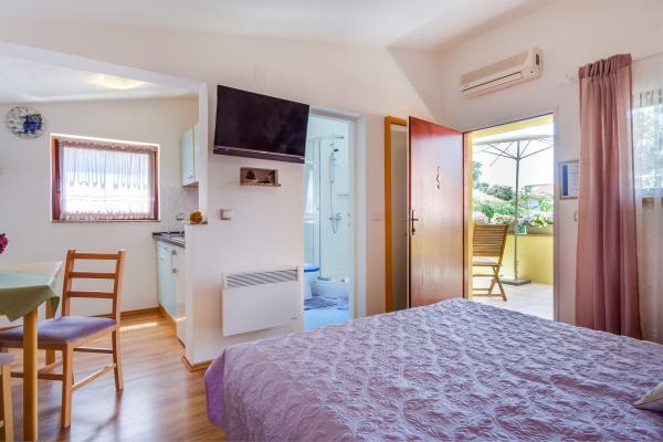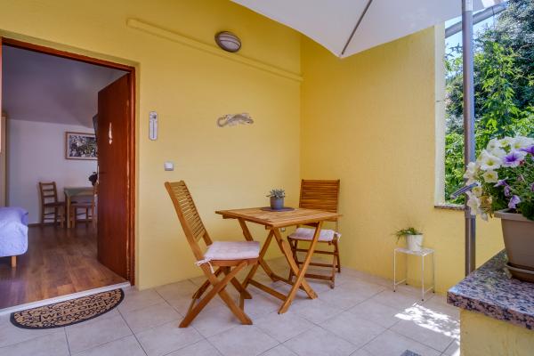 Apartamentul complet utilat Arty, catalogat cu 4 stele, este destinat exclusiv cazarii a 2 persoane. Este o facilitate separata langa casa in care locuiesc gazdele. Este situat intr-o zona linistita langa mai multe plaje si este ideal pentru vacanta. Se afla la doar cateva minute distanta de cele mai apropiate plaje, iar putin mai departe sunt cateva plaje mai frumoase. Este posibil să aduceți un animal de companie în apartament la un cost suplimentar de 10 euro. O băutură de bun venit este inclusă în preț. Pe langa bucataria utilata, sufragerie, dormitor si baie, apartamentul dispune si de parcare proprie, loc pentru biciclete, gratar numai pentru oaspeti, internet WI-FI gratuit, aer conditionat, incalzire, TV, antena parabolica, ... În bucătărie, fiecare oaspete primește: burete și detergent nou pentru spălarea vaselor, prosoape de bucătărie, . .In bucatarie mai sunt: prajitor de paine, aparat de cafea, ceainic, mixer,... Va dorim un bun venit si o vacanta placuta in apartamentul nostru!