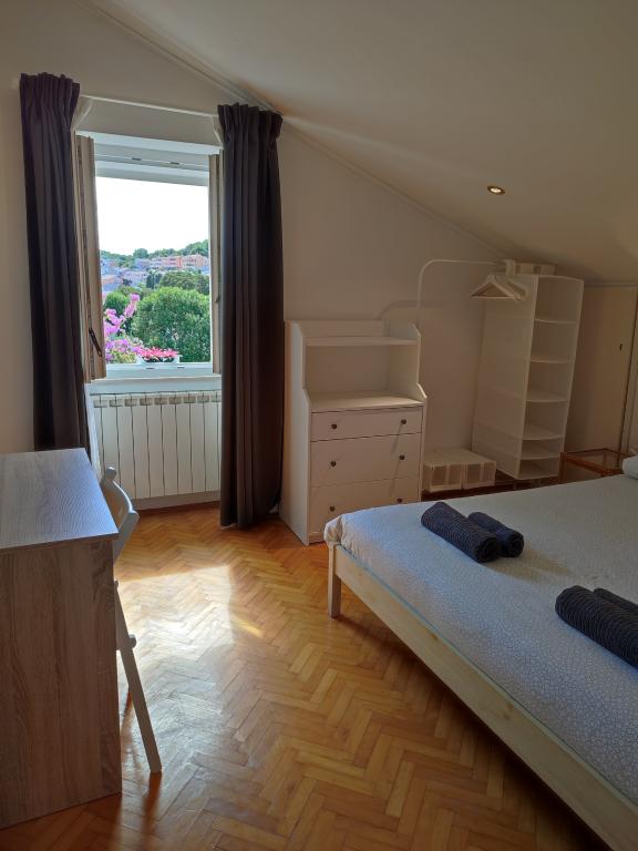 Apartament in centrul orasului cu vedere la mare. Un apartament dotat modern situat chiar în centrul orașului, ideal pentru oricine dorește să se bucure de a fi aproape de toate facilitățile importante, restaurante, magazine și atracții culturale, cu o vedere frumoasă la mare. Apartamentul este un loc perfect pentru relaxare, cu utilizarea unei gradini cu maslini. Locul de parcare este gratuit, la 100m de apartament.